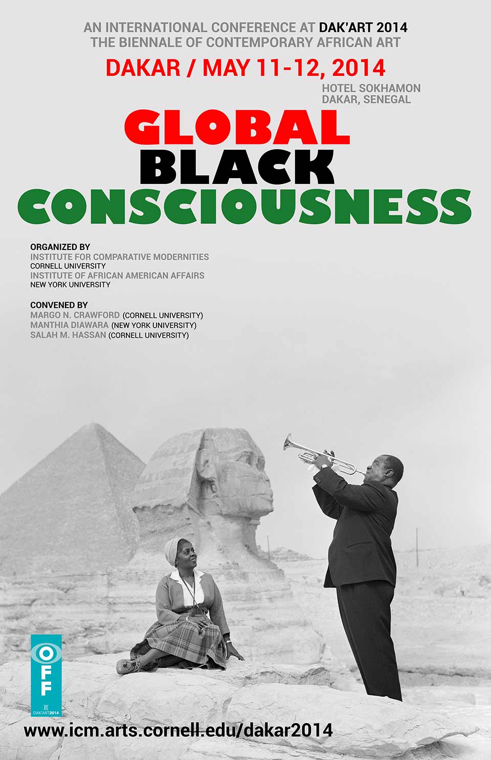 The Institute for Comparative Modernities (Cornell University) and the Institute of African American Affairs (New York University) will hold the international conference “Global Black Consciousness” on May 11 and 12, 2014, in Dakar, Senegal. The conference is coordinated by Margo Natalie Crawford and Salah Hassan (Cornell University) and Manthia Diawara (NYU). The conference will coincide with the opening days of the Dakar Biennale (Dak’Art 2014), which opens on May 9, 2014. The two-day gathering will focus on the theme of “Global Black Consciousness,” with invited participants who will present new and unpublished work.