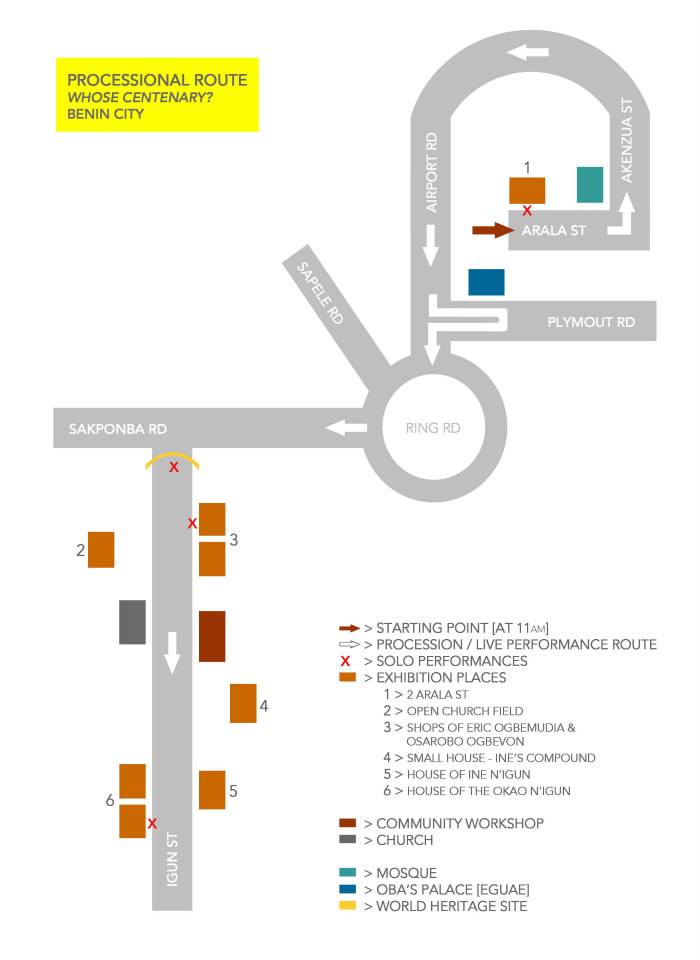 Whose Centenary? is a two year long series of artistic collaborations that also aims to redefine the boundaries of museological spaces in Africa, where places, people and their memories continuously enrich our understanding of life, art and history. Therefore Igun Street is apprehended as a living museum, becoming an ideal space for this first intervention. The multi-series exhibitions will include, performance art, installation art, poetry reading, community workshops, songs/choreography, painting, photography, video and collaboration between contemporary Nigerian artists with traditional Edo bronze casters and their wards, in a series of community based art projects in Benin City.