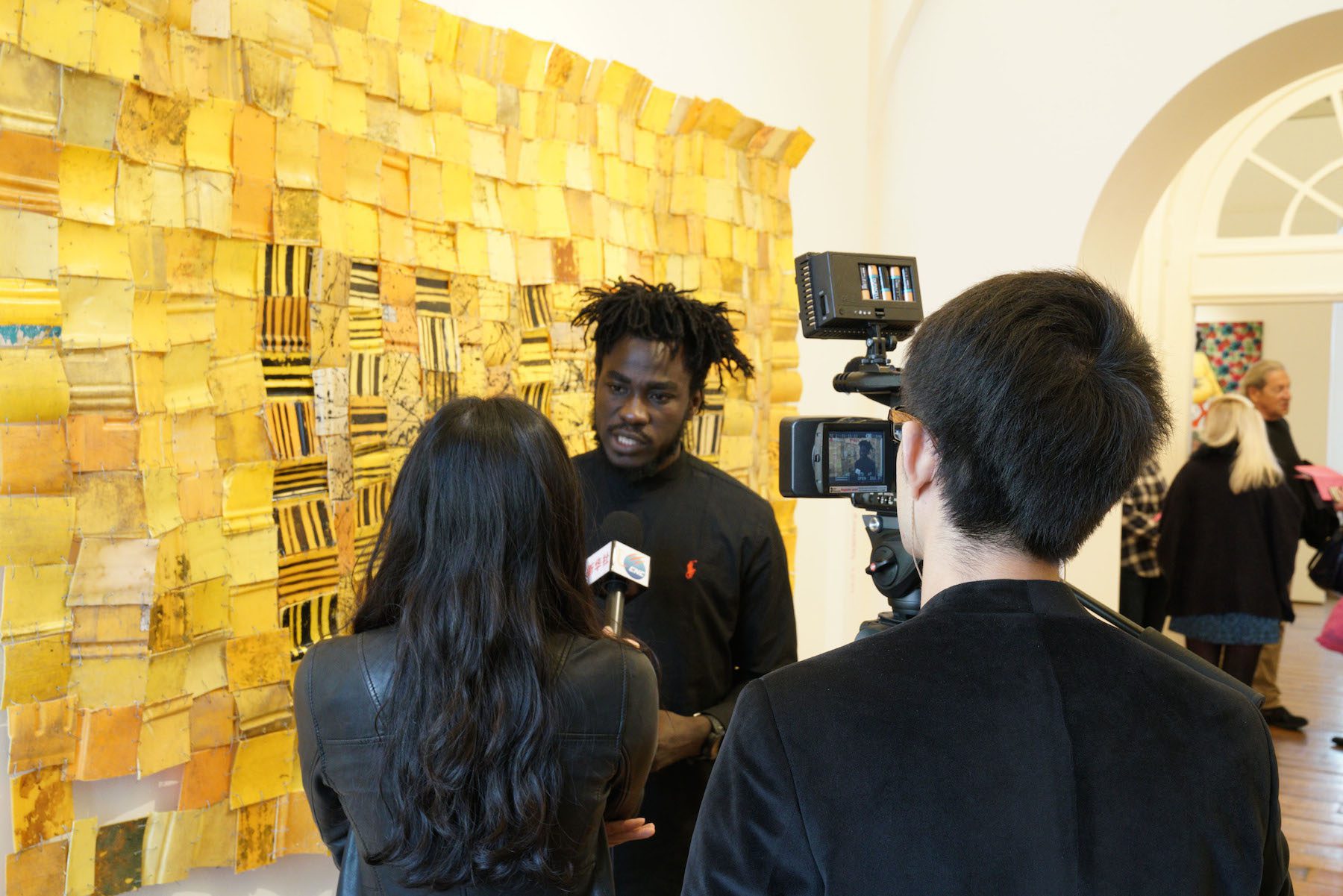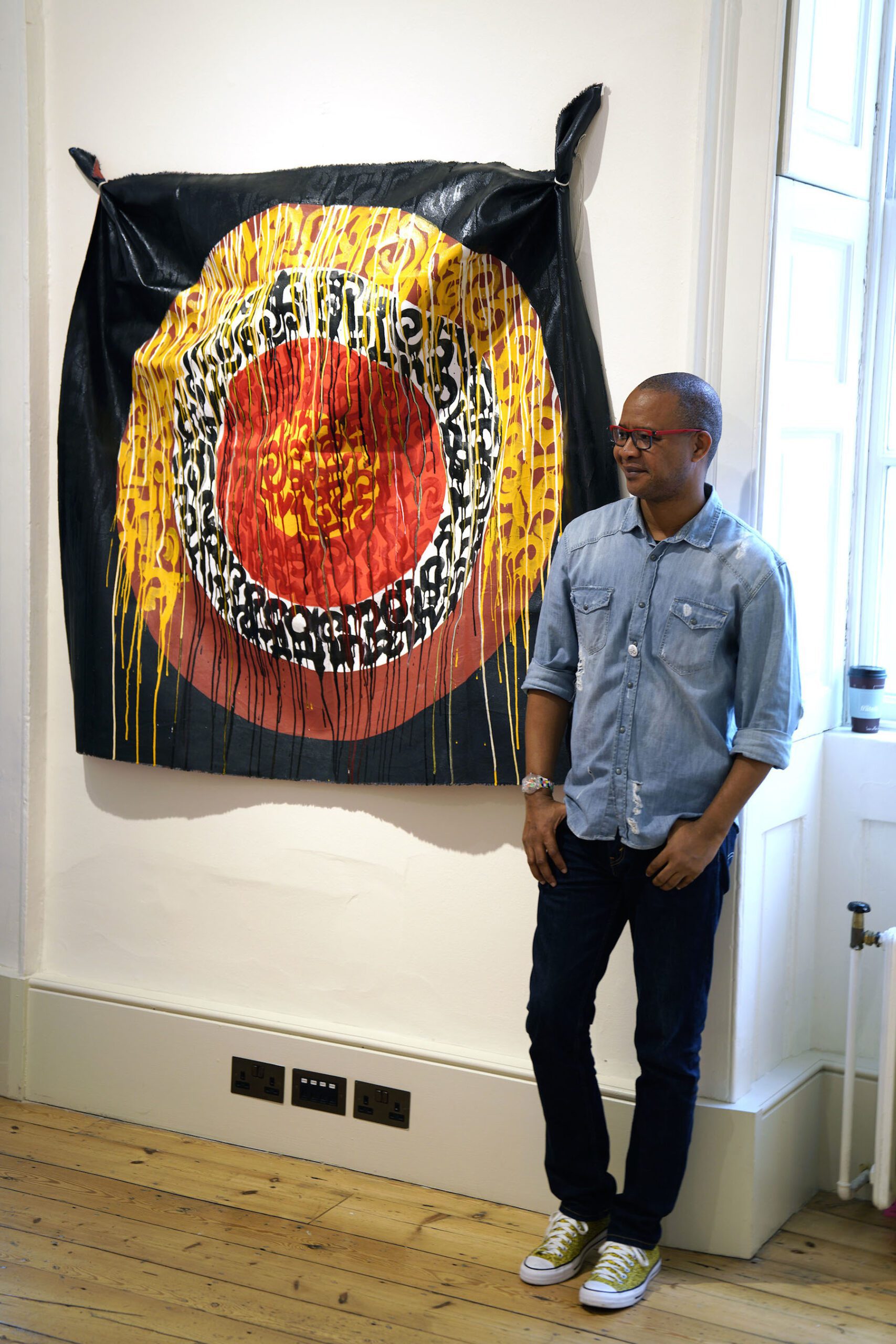 Artist Serge Attukwei Clottey, Gallery 1957 booth at 1:54 London 2016. Courtesy of 1:54 © Victor Raison