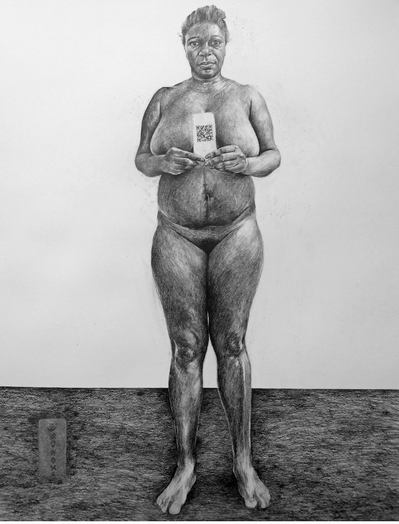PB: Everything you experience via the QR Codes comes directly from the women I drew. It is their communication to you; the drawing just becomes a channel for them to speak through. They also have the agency to change this whenever they choose, for the life of the work. The richness, which you speak of, is a testament to the power in collective women’s voices, which really is what the body of work is about. The title of the show, For Every Real Word Spoken, is taken from Audre Lorde’s Transformation speech, in which she describes the radical self-care gleaned from being in the presence of other women, and insists on the power of our voices. The full title of the speech, delivered in 1980 after she had battled cancer, was The Transformation of Silence into Language and Action, and asked explicitly, “What are the words you do not have yet? What do you need to say? What are the tyrannies you swallow day by day and attempt to make your own, until you will sicken and die of them, still, in silence?” And she finishes by saying that, although we have been socialised to respect fear more than our own need for language and definition, she chooses to speak out in an attempt to break silence and bridge difference. “For it is not difference that immobilises us, but silence itself.” I hope that, in some way, the proposition offered in For Every Real Word Spoken is, simply, an attempt to break that silence.
