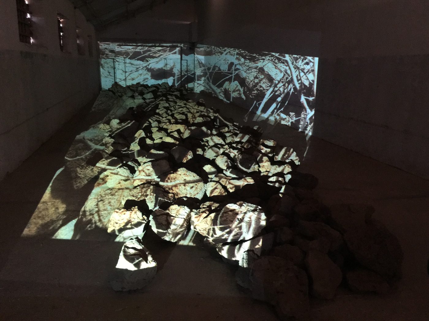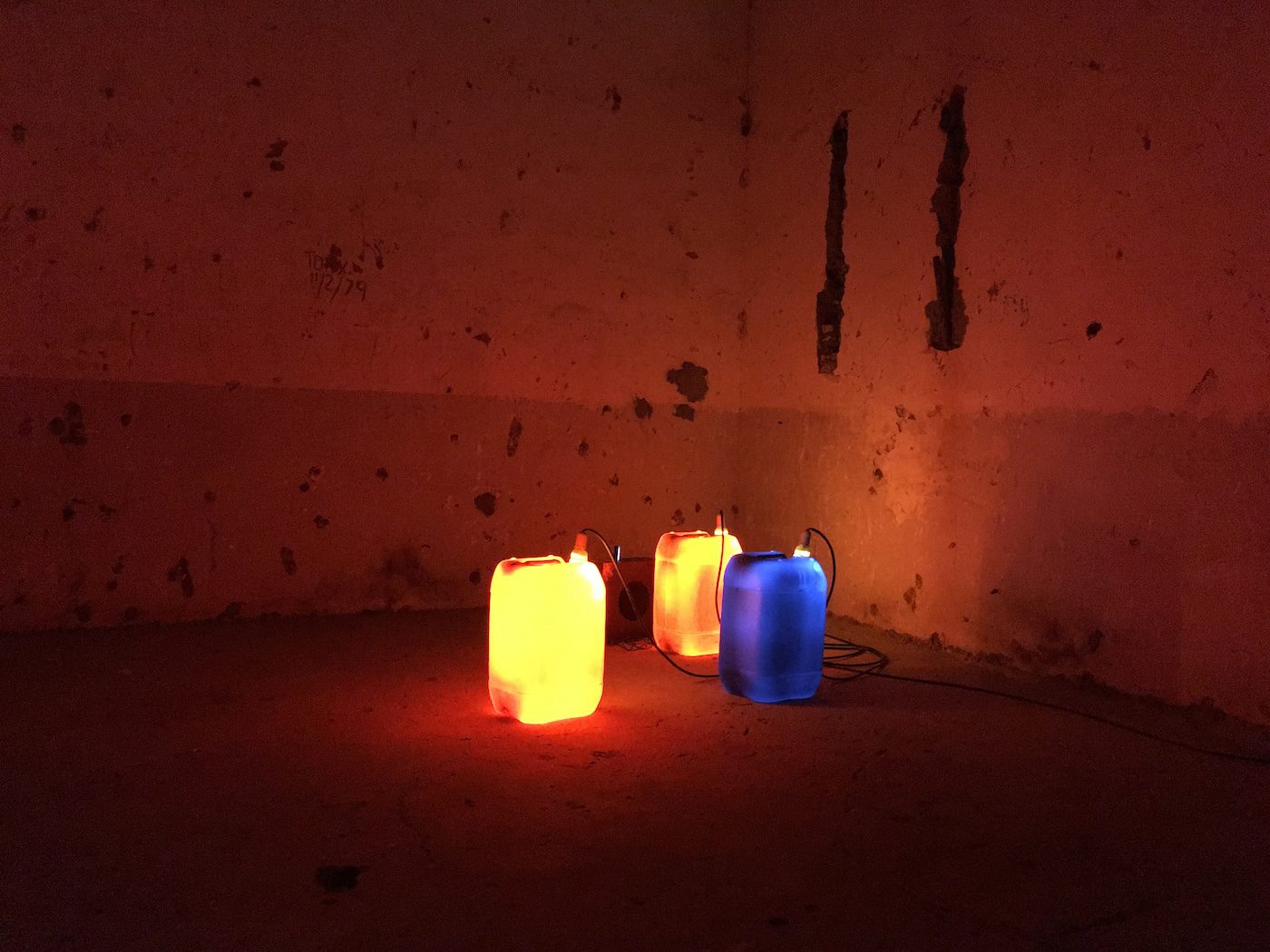 Rust, qui faisait partie du projet A Glimmer of Freedom organisé par Márcia Bruno à l’ancienne colonie pénitentiaire de Tarrafal en 2017, comprenait trois pièces multimédias spécifiques in situ : Surrounding Seas, Perpetual Cycle et Hard Water. Dans Surrounding Seas, des projections, des sons et des photographies ont créé un environnement immersif, rappelant des récits de survie et la famine de 1947-48. Perpetual Cycle juxtapose des images d’archives coloniales de travail forcé et d’exploitation avec des scènes contemporaines de lutte, remettant en question le mythe colonial portugais persistant d’une nation véritablement multiraciale. Hard Water, avec des jerrycans illuminés et une installation sonore qui les accompagne, met en lumière la lutte quotidienne des femmes cap-verdiennes pour l’accès à l’eau.