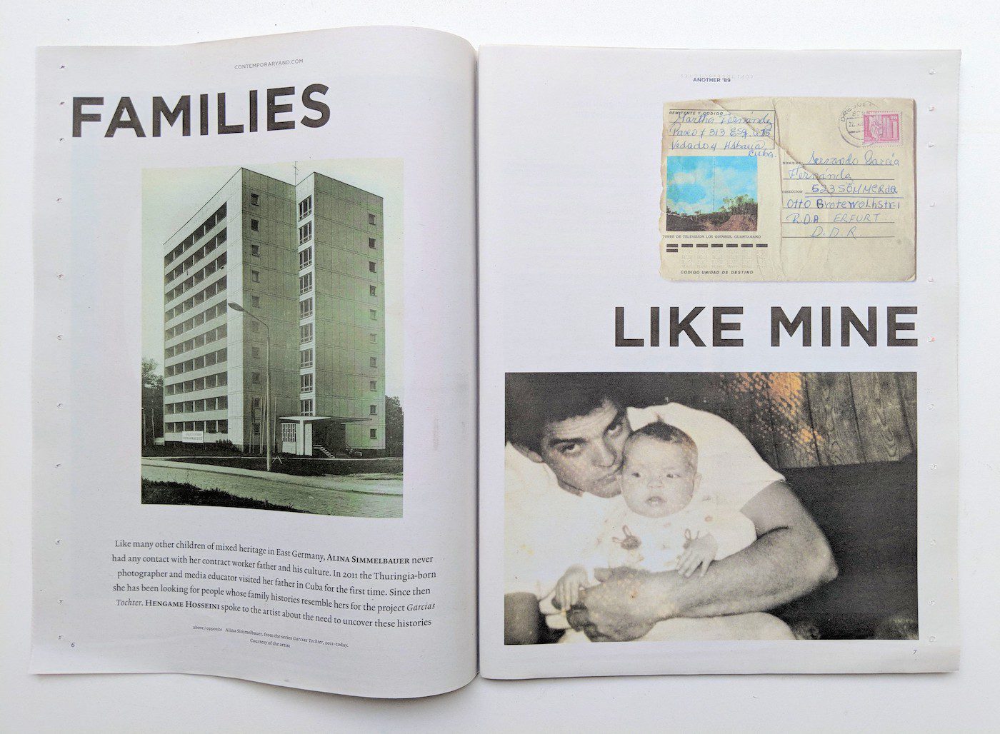 Titled “Another 89,” this issue focuses on all those German stories between 1989 and 1990 that were rarely or not mentioned at all. This includes artistic examinations of the stories of Angolan and Cuban migrant workers who from 1989 onwards were forced to return to their home countries, regardless of their family and social ties. It also looks at the perspectives of Afro-German artists who grew up in the former GDR. Furthermore, the issue explores the influence of the Iron Curtain and the year 1989 on “global” art history outside of the German context – from the international iconography of Angela Davis’s image to artistic activism in Chile and a bust of Karl Marx travelling to Ethiopia. This bust was ceremoniously installed there to emphasize the connection with the East German “brother state”. Today, billboards of major Ethiopian beer brands tower high behind an aging Marx …