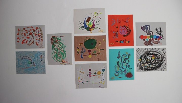 Halim El-Dabh paintings in « Canine Wisdom for the Barking Dog – The Dog Done Gone Deaf: Exploring The Sonic Cosmologies of Halim El-Dabh » curated by Bonaventure Soh Bejeng Ndikung. Musée de l’IFAN. Photo: C&