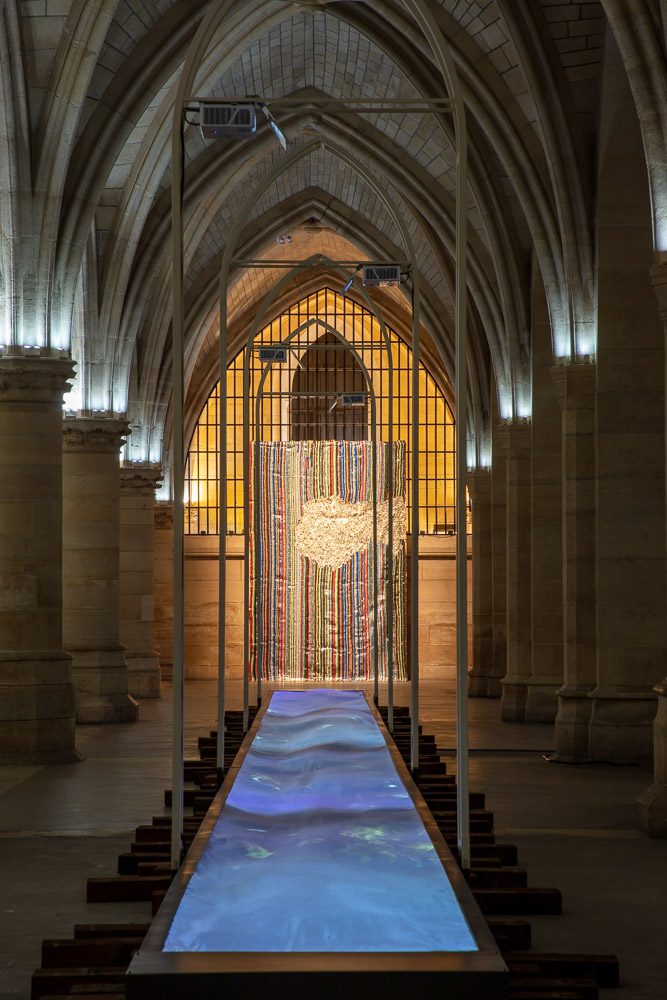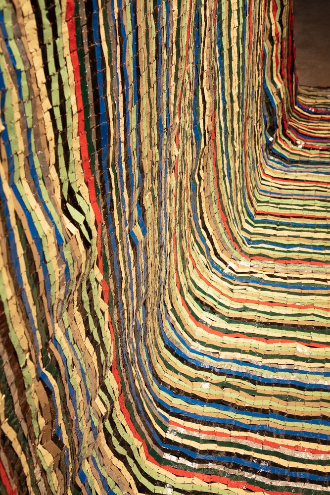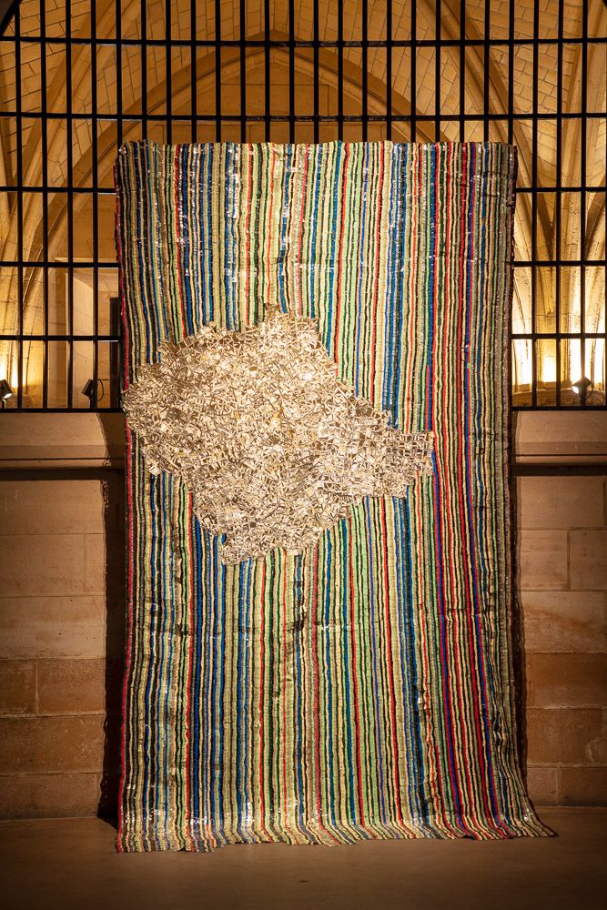 Pour la saison Africa2020, le commissaire général N'Goné Fall a installé au Centre des monuments nationaux à Paris les grandes étoffes d'El Anatsui faisant écho à l'histoire des lieux et du temps qui passe.