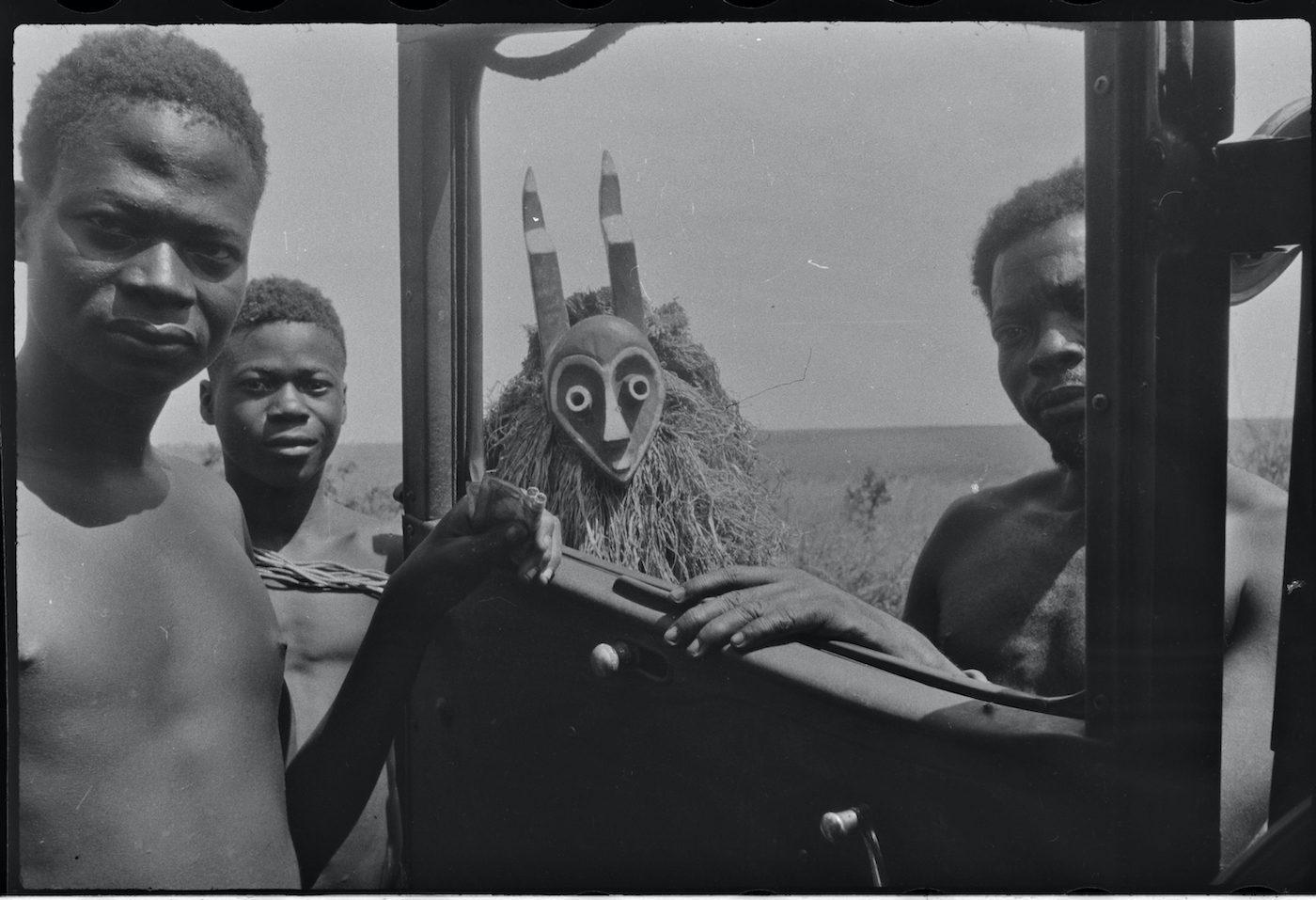 Mask and car. Hans Himmelheber, Congo, 1938. SW negative © Museum Rietberg, gift from community of heirs to Hans Himmelheber