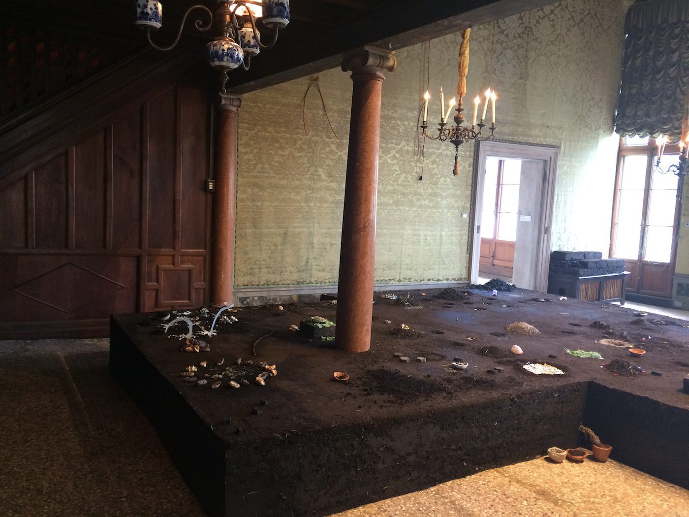 These are reasonable suggestions, but I realized that something was eluding and probably ensuring the fascination of this largely European audience: it is not only the metaphysical and spiritual practices relating to Africa and its Diaspora that Bopape refers to in this work. There is something much more elementary and intimate at play which has to do with a local tradition of South African sculptors such as Jackson Hlungwani and Samson Mudzunga, who had deep and bonded relationships to the earth from which they fashioned their wooden sculptures, and from which Mudzunga would emerge repeatedly, staging his rebirth. It also has to do with an aesthetic that references the color of South African dust, the bareness of a scrubbed and swept yard around a Limpopo homestead, and with the ordered randomness of ritually significant objects in that land. By this I am not suggesting that there is something essentially “African” in this work and therefore illegible to anyone who is not African; rather I am suggesting that there is an aesthetic and emotional charge in this work that is uniquely located in place and site and in an altered and radically different relation to land and landscape.