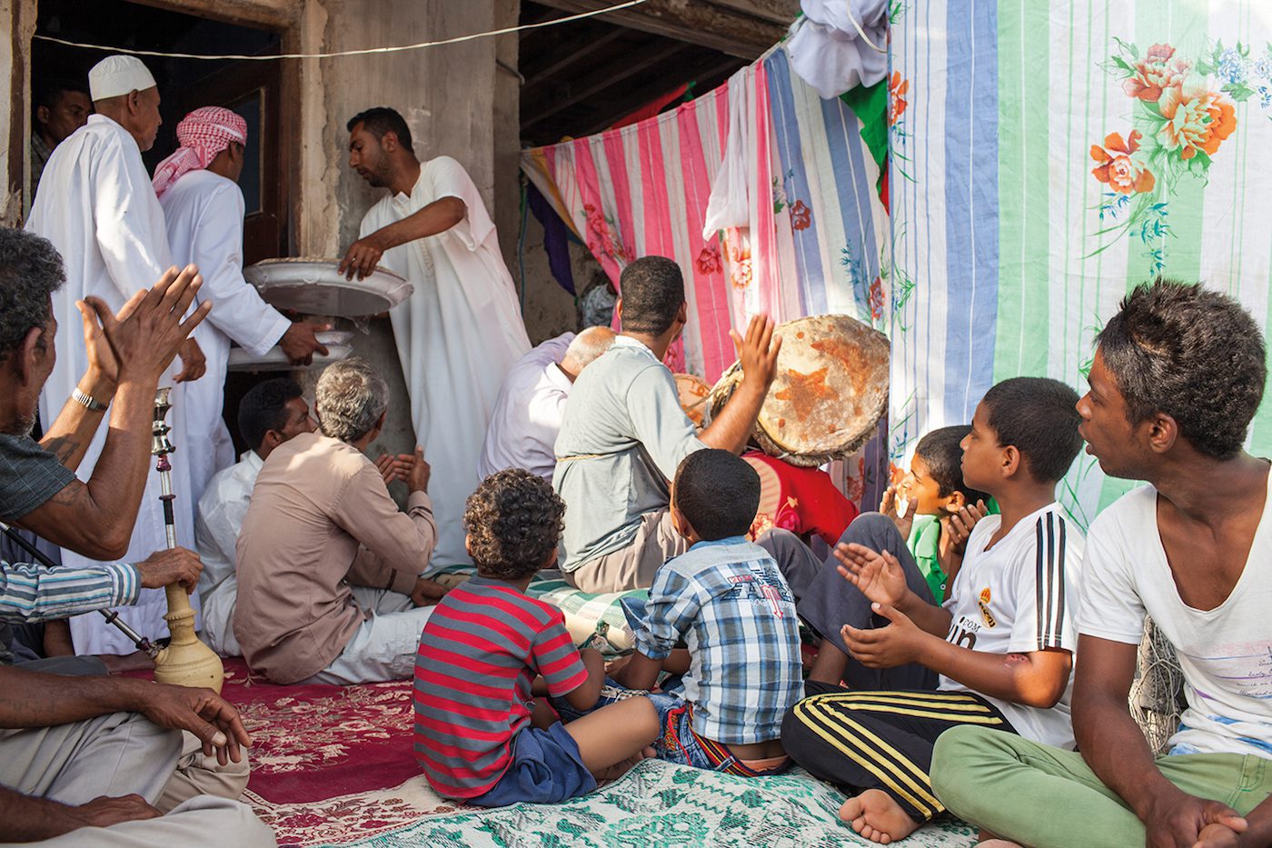 When in 2015 Mahdi Ehsaei’s photo-essay Afro-Iran: The Unknown Minority was published, it soon went viral, pushing the community of Iranians of African descent into the public eye of the international media. The visual evidence produced an array of reactions from scholars, researchers, and the art scene itself, varying in depth and criticism. Ehsaei’s collection of stunning colorful photographs presented portraits of local southern Iranian people in their everyday environment. In what is today mostly located in the southern province of Hormozgan on the Persian Gulf, the people depicted in Ehsaei’s work wear colorful clothes, the women’s intricate hijabs and chadors providing a strong contrast to the (Western) idea of Iranian veiling practices. Others are shown in personal settings or public spaces such as markets, streets, and on beaches. Women, men, and children are depicted either by themselves or in groups in their social environment and during cultural practices such as a zar ritual.