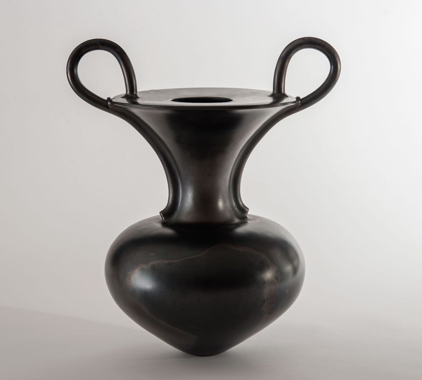 Magdalene Odundo,Untitled, 1989. Burnished and carbonized terra-cotta, 44 x 38 cm, Signed under base. Courtesy of Anthony Slayter-Ralph.