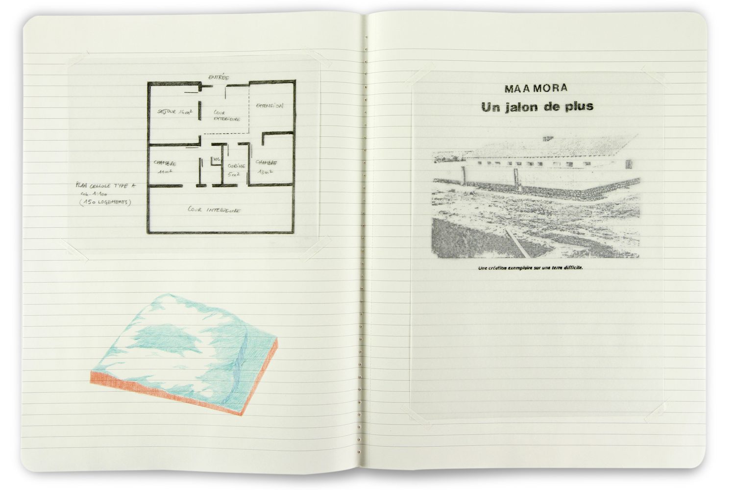 Massinissa Selmani, 1000 villages, Drawing 2/20, 2015. Drawings on double pages and notebook cover. Graphite, marker and transfer on paper and tracing paper. Collection Frac entre Val de Loire, France. Courtesy the artist.