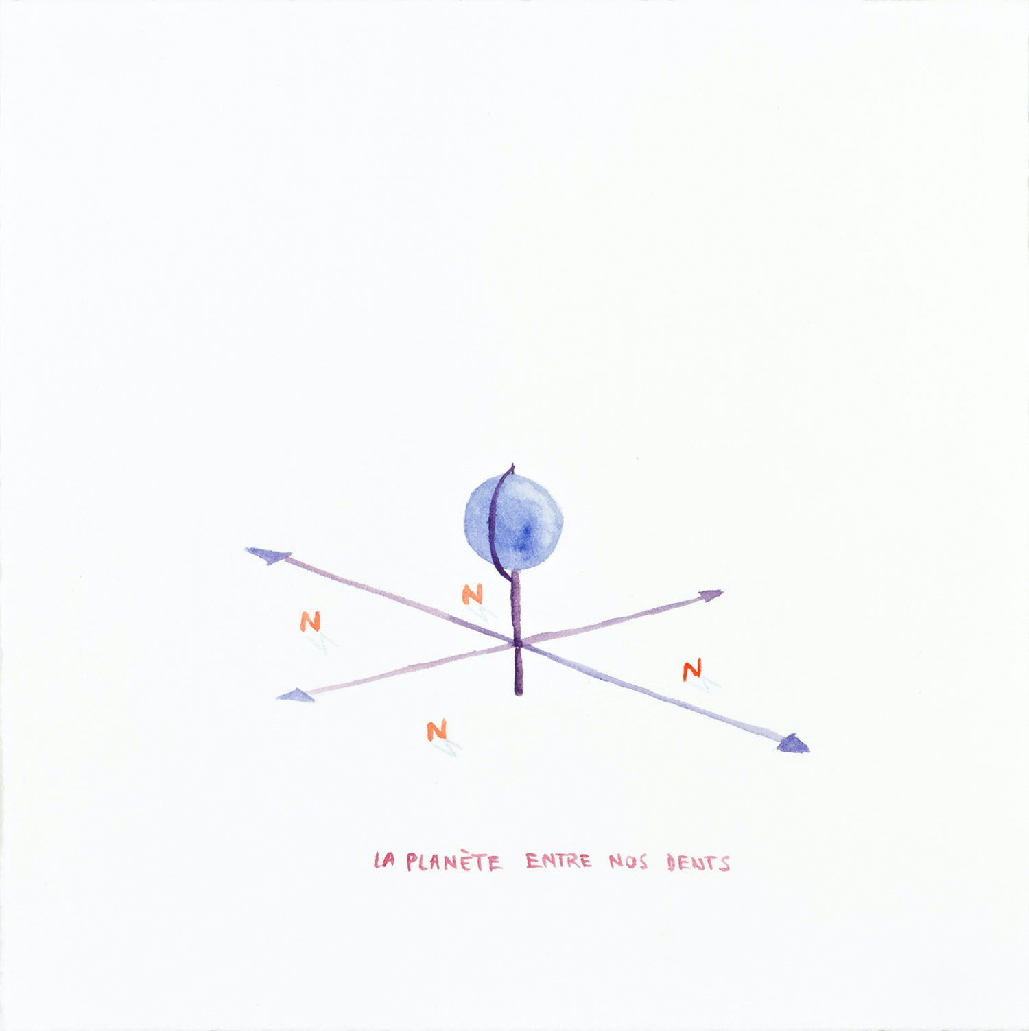 Massinissa Selmani, la planete entre nos dents, 2021. Watercolor, coloured pencil on paper, 22 x 22 cm. © ADAGP Paris – Courtesy Galerie Anne-Sarah Bénichou, Paris.