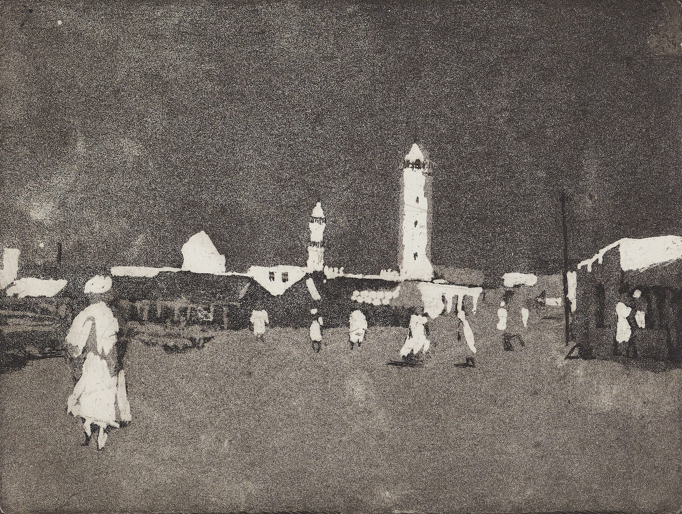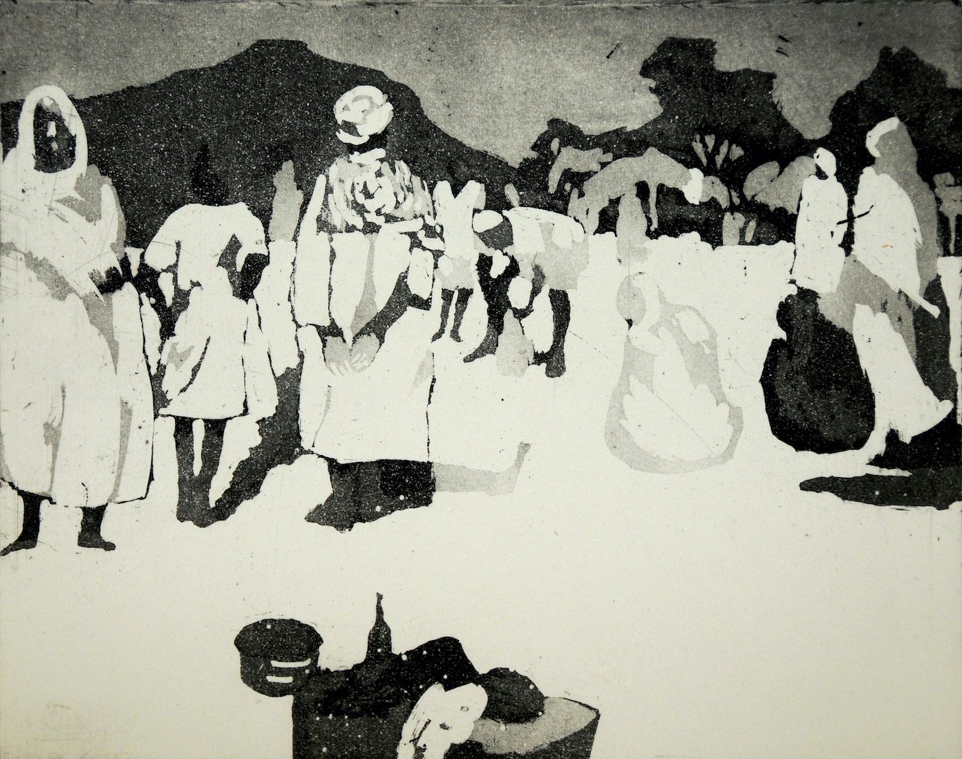 Mohammad Omar Khalil, Asilah Connection, 1992. Etching / softground / aquatint / spitbite, 24.5 x 33cm