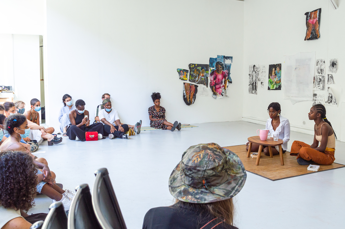 Plus de cinquante ans plus tard, la curatrice Amandine Nana a voulu perpétuer ce legs en imaginant un nouvel espace à Paris permettant de voir, d’expérimenter et de se remémorer des artistes noirs. Alors étudiante en histoire de l’art, urbanisme et études africaines sur les traces des histoires oubliées des pratiques artistiques cosmopolites dans le Paris des années 1950, Nana a vu sa frustration augmenter face au manque de ressources dans les bibliothèques publiques. Lasse de devoir chercher par elle-même des textes essentiels, elle décide alors de commencer à réunir un fonds documentaire dans l’optique de créer une bibliothèque axée sur les arts issus des pratiques créatives afro-diasporiques. « J’étais déjà en train de me dédier à ce travail lorsque j’ai commencé à réfléchir à le proposer à une galerie traditionnelle ou un espace dédié à l’art », explique Nana. En 2020, pendant le COVID et le confinement, sur fond de Black Lives Matter au niveau international et Justice pour Adama au niveau national, elle décide alors de réagir à l’absence d’espaces culturels diasporiques en France.