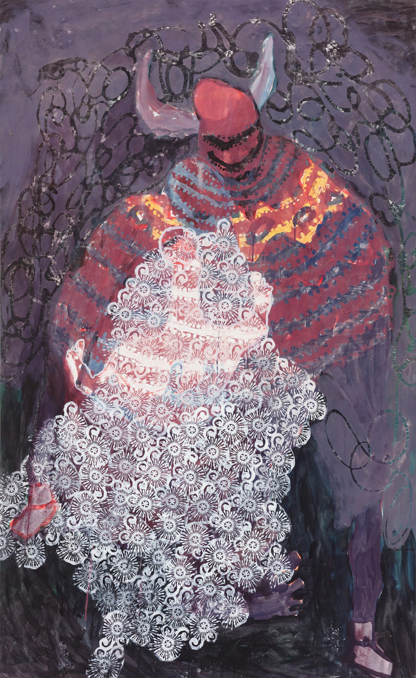 Portia Zvavahera, Hapana Chitsva (All Is Ancient), 2018. Oil-based printing ink and oilstick on canvas, triptych, part I, 204 x 126 cm. Courtesy the artist and Stevenson, Cape Town and Johannesburg
