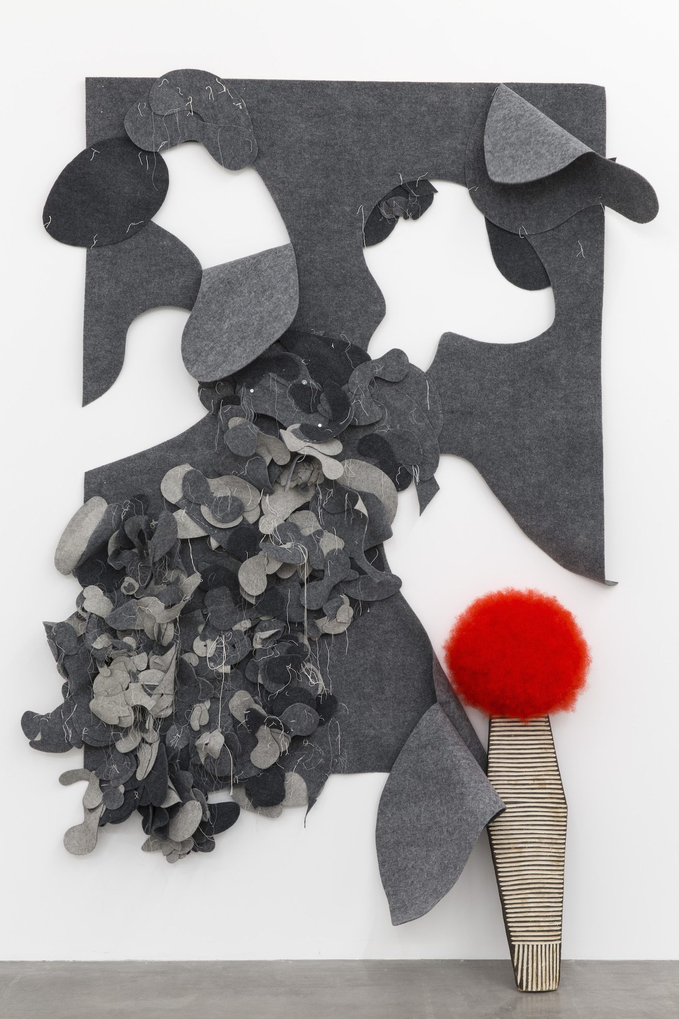 Marcia Kure, The Three Graces (Detail), 2014. Acrylic wig, bolts, paint, polyester thread, rug and wood. Courtesy Centre National d’art and Georges Pompidou © Marcia Kure. Photo © Sophie Thun