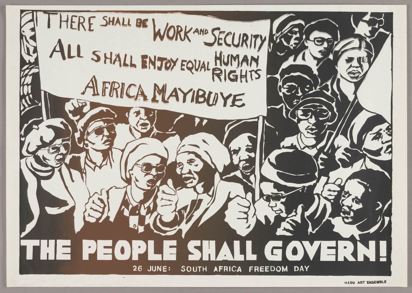 The Medu Art Ensemble formed in the late 1970s in opposition to South Africa’s apartheid policy of racial segregation and violent injustice. Through graphic design and poster production, members forcefully articulated a call for radical change, advocating for decolonization or majority (nonwhite) rule in South Africa and in the neighboring countries of Angola, Mozambique, Namibia, and Zimbabwe. The People Shall Govern! is the first-ever exhibition on Medu in North America and will run from 27 April until 2 September at Art Institute Chicago. Get an impression before the opening here!