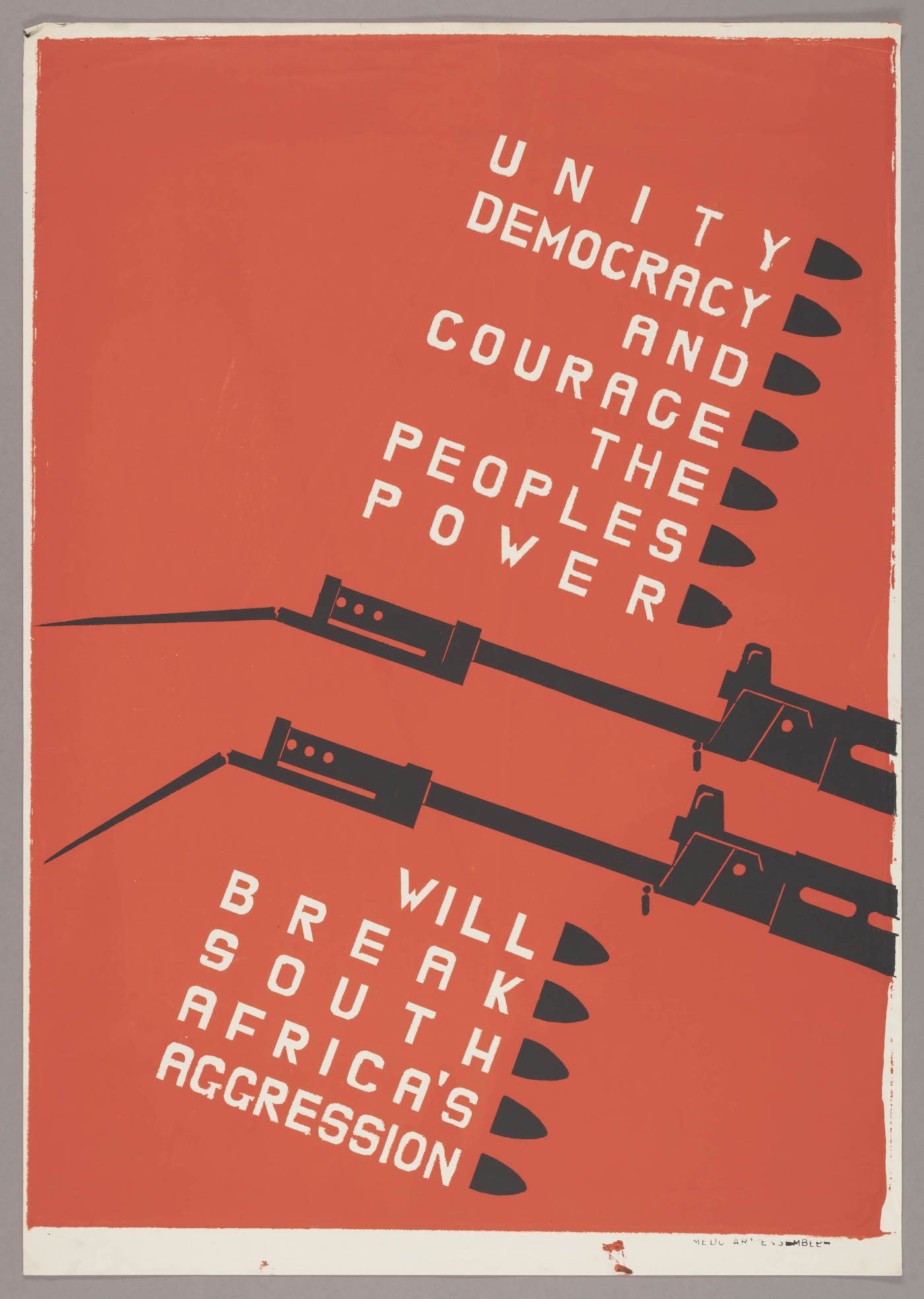 Medu Art Ensemble (Thamsanqa Mnyele). Unity, Democracy and Courage, 1983. The Art Institute of Chicago, gift of Artworkers Retirement Society. © Medu Art Ensemble. Medu Art Ensemble (Judy A. Seidman). The People Shall Govern!, 1982. The Art Institute of Chicago, gift of Artworkers Retirement Society. © Medu Art Ensemble. Medu Art Ensemble (Thamsanqa Mnyele and Judy A. Seidman). The People Shall Defeat Aggression, 1983. The Art Institute of Chicago, gift of Artworkers Retirement Society. © Medu Art Ensemble. Medu Art Ensemble. The Constellation of States, 1979. The Art Institute of Chicago, gift of Artworkers Retirement Society. © Medu Art Ensemble.