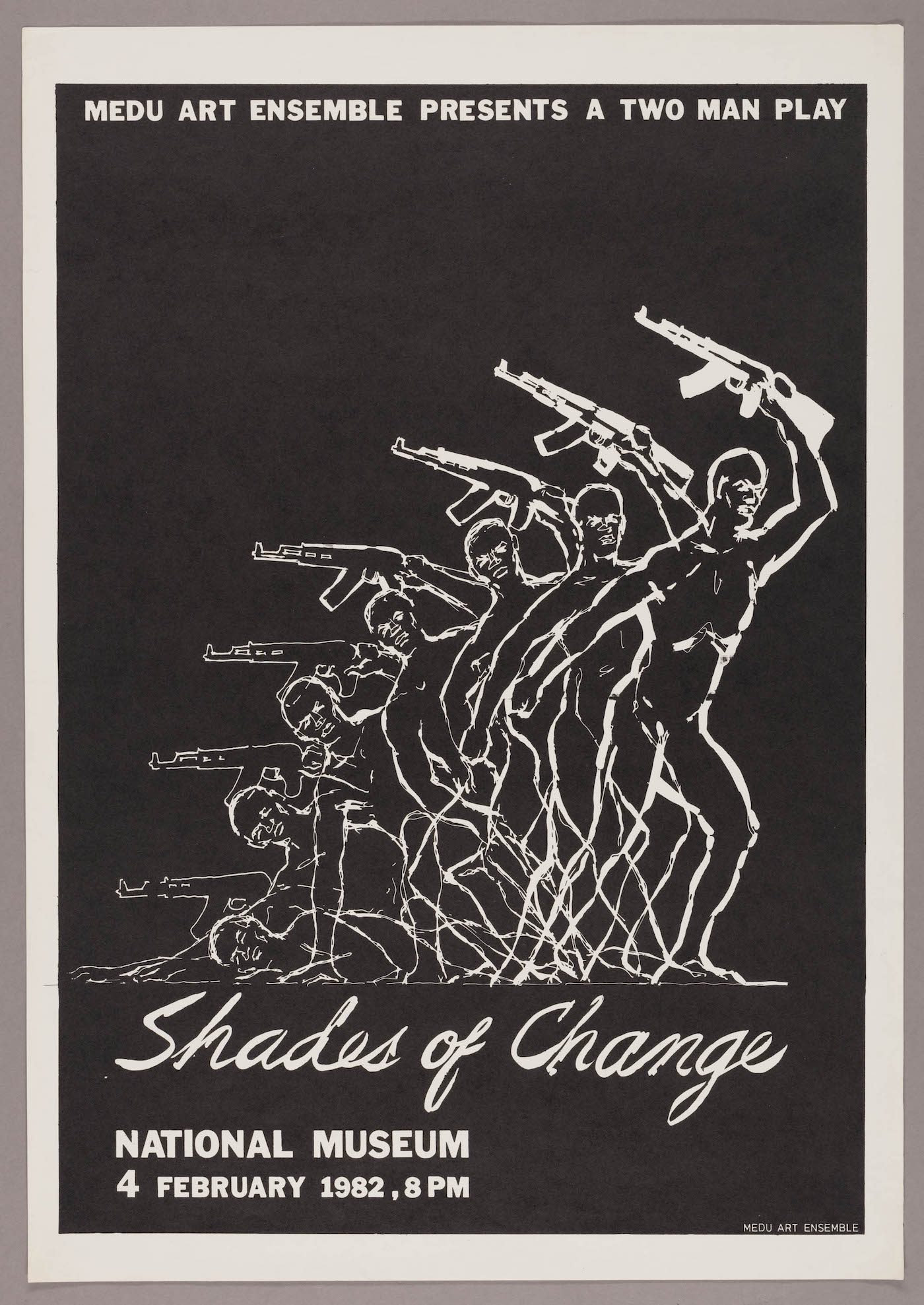Medu Art Ensemble (Thamsanqa Mnyele). Unity, Democracy and Courage, 1983. The Art Institute of Chicago, gift of Artworkers Retirement Society. © Medu Art Ensemble. Medu Art Ensemble (Judy A. Seidman). The People Shall Govern!, 1982. The Art Institute of Chicago, gift of Artworkers Retirement Society. © Medu Art Ensemble. Medu Art Ensemble (Thamsanqa Mnyele and Judy A. Seidman). The People Shall Defeat Aggression, 1983. The Art Institute of Chicago, gift of Artworkers Retirement Society. © Medu Art Ensemble. Medu Art Ensemble. The Constellation of States, 1979. The Art Institute of Chicago, gift of Artworkers Retirement Society. © Medu Art Ensemble.