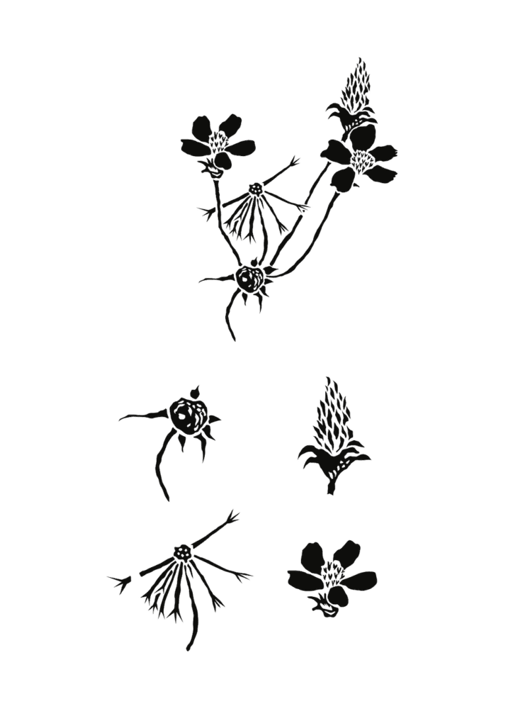 Muchege, Bidens pilosa, Digital motif drawing, 2024.