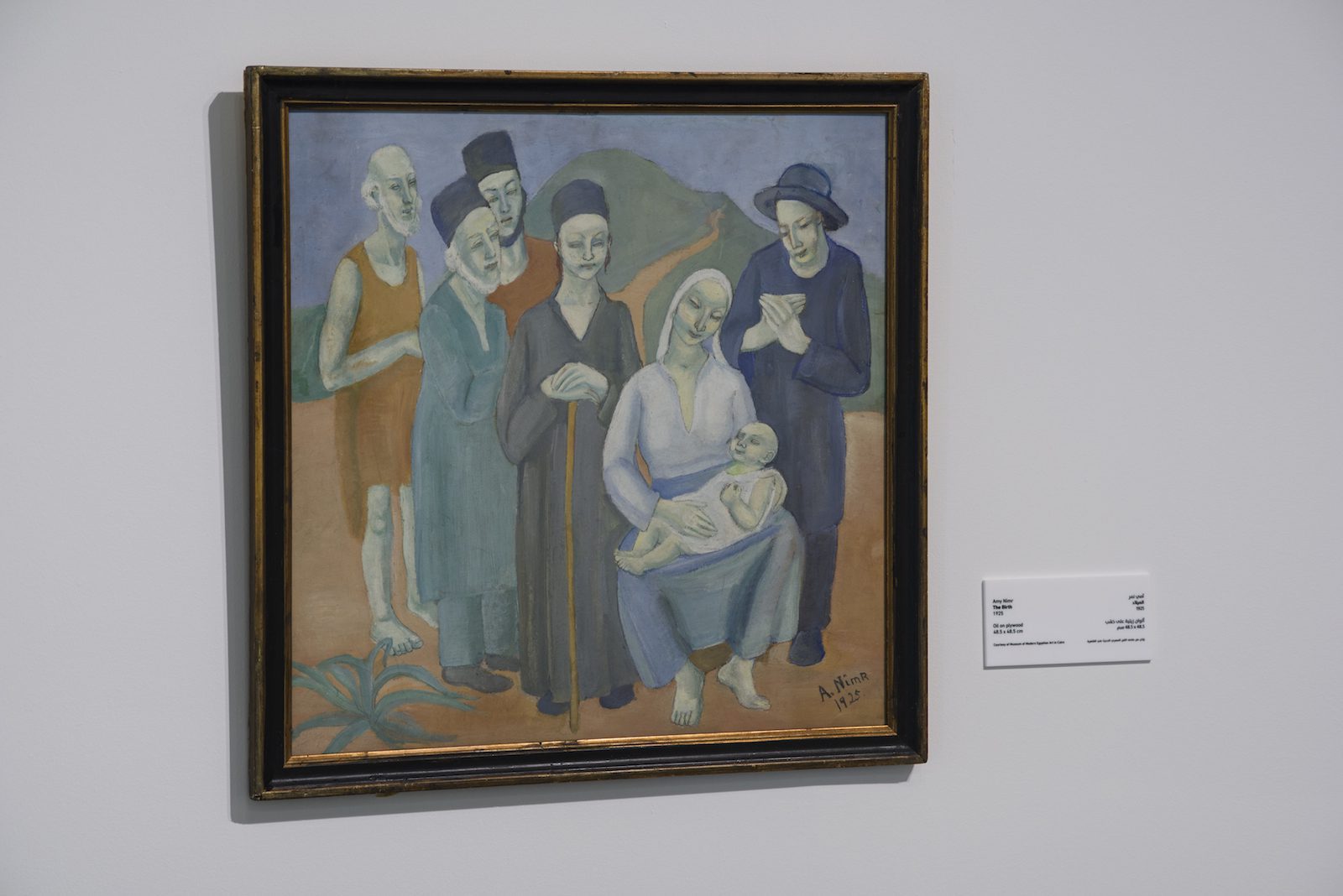 Amy Nimr, The Birth, 1925. Oil on plywood, 48.5 x 48.5 cm. Installation view. When Art Becomes Liberty: The Egyptian Surrealists, Palace of Arts, Cairo. Courtesy of Museum of Modern Egyptian Art in Cairo. Image courtesy of Sharjah Art foundation.