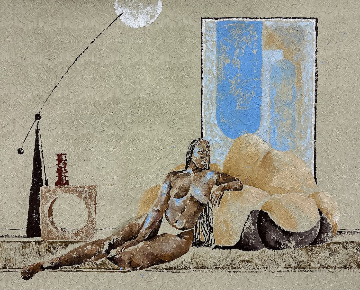 Buqaqawuli Nobakada’s primary medium is acrylic paint on laced paper, often with the use of custom clay or gold jewellery; wherein much of the passion in her work is expressed as she celebrates border crossings that take place in the imagination, the mind as well as in real life.