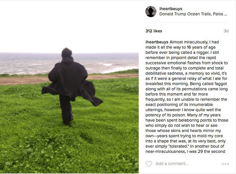 A screenshot from EJ Hill’s Instagram: https://www.instagram.com/p/BPhMk0dga0G/. Photo by Peter Tomka
