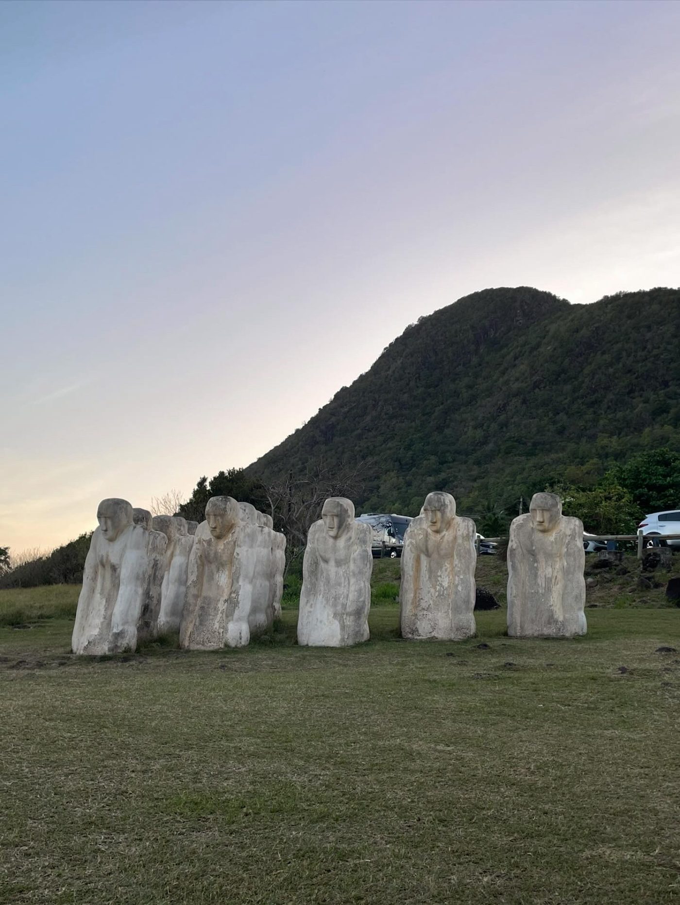 CB : Je souhaite parler d’un élément qui était aussi révélateur de notre voyage que de la politique environnante : les sentiments. Notre première réunion avec le groupe de praticiens, d’anciens, de famille et de journalistes invités par Julien et son équipe a eu lieu au Cap 110, à l’Anse Caffard. Il s’agit d’une installation sculpturale commémorant l’abolition de l’esclavage. Assis en cercle en demi-lune et enveloppé de sons industriels et de vagues, Julien a annoncé que les jours à venir seraient un voyage dans son esprit et son travail. Je pense que cela a donné le ton de ce qu’il essayait d’accomplir au cours de ce voyage et de son approche en général : il veut que nous ressentions son travail.