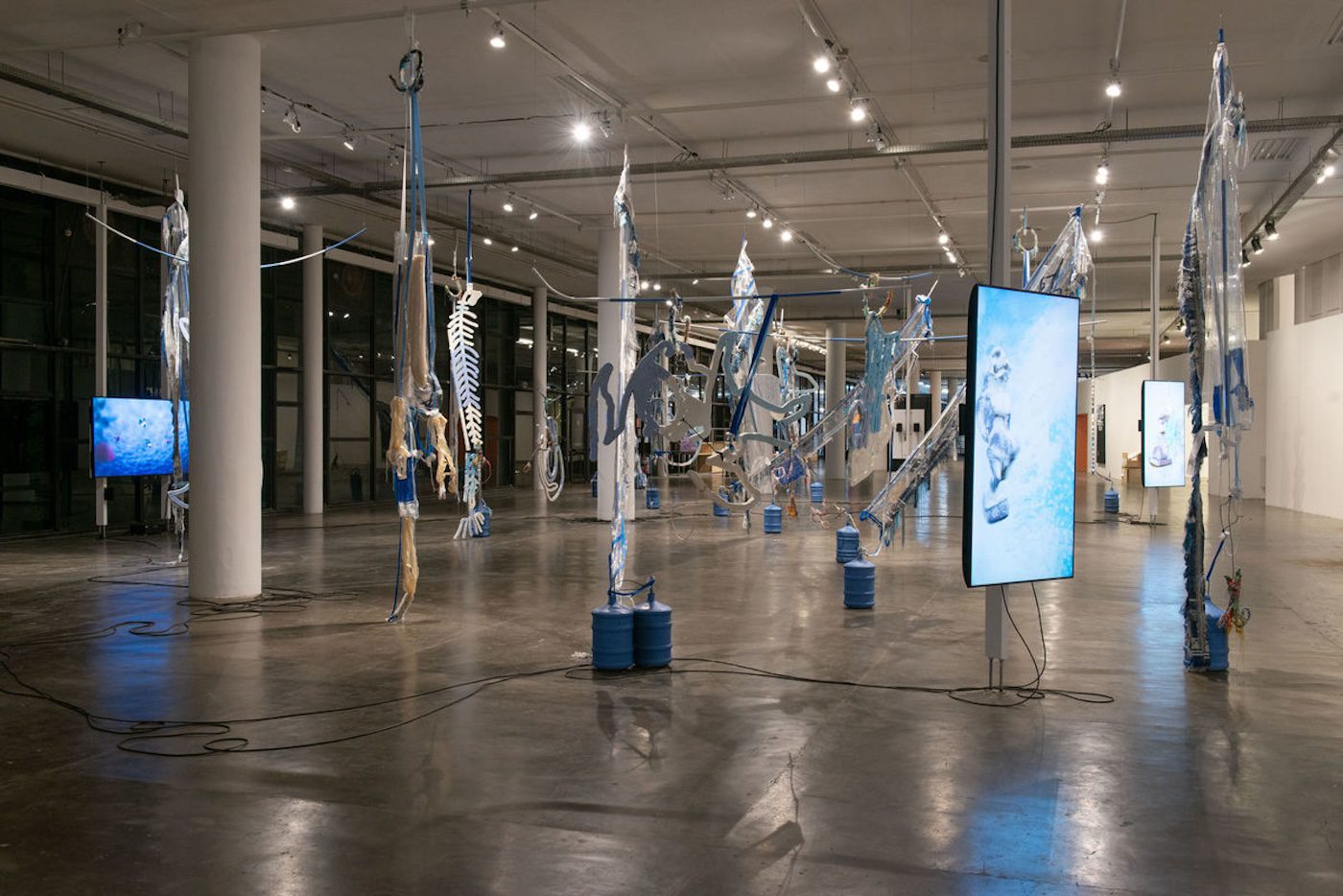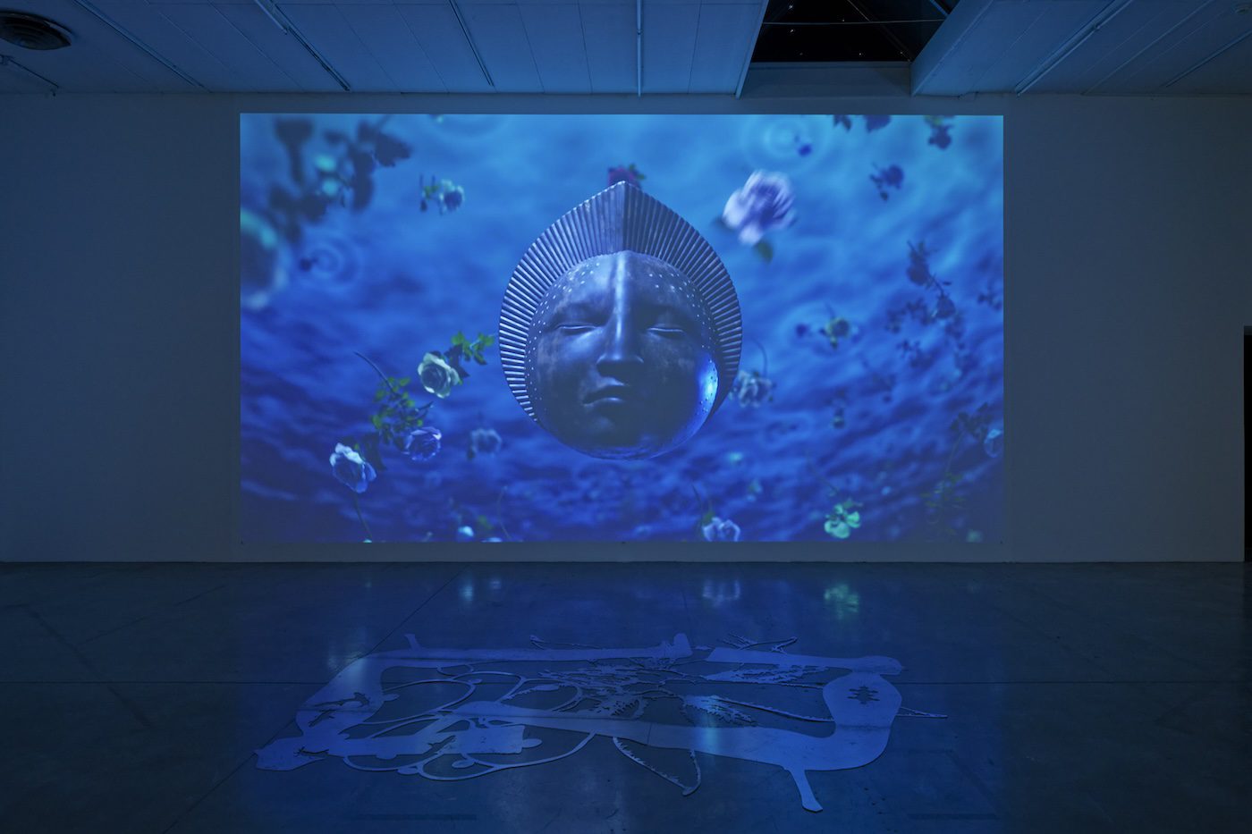 Julien Creuzet “Oh téléphone, oracle noir (…)”, exhibition view at Magasin CNAC, Grenoble, 17 November 2023—26 May 2024. Work on view: Julien Creuzet, “Zumbi Zumbi Eterno”, 2023, , et Study of two birds on the 14th meridian (…), 2022, Courtesy of the artist, DOCUMENT, Chicago | Lisbon; Andrew Kreps Gallery, New York; Mendes Wood DM, São Paulo, Brussels, Paris, New York.