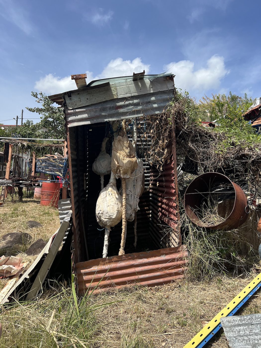 Sculptures dans l’atelier extérieur de Christian Bertin en Martinique. Photo: Cristian Baena.