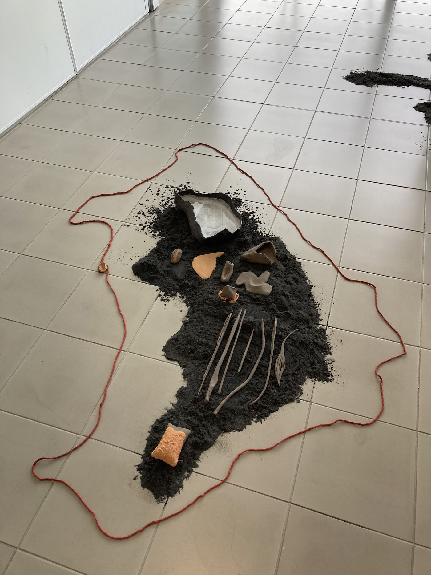 Vue de l’œuvre ZUMBI ZUMBI ETERNO, de Julien Creuzet, lors de la 35e Biennale de São Paulo – choreographies of the impossible © Levi Fanan / Fundação Bienal de São Paulo.