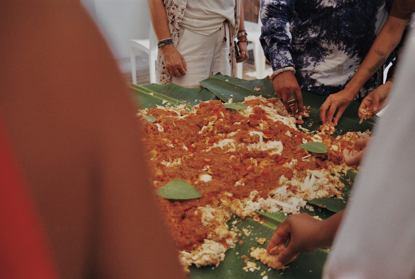 Dégustation collective du Trempage, plat traditionnel martiniquais, mangé à la main. Photo: Cristian Baena.