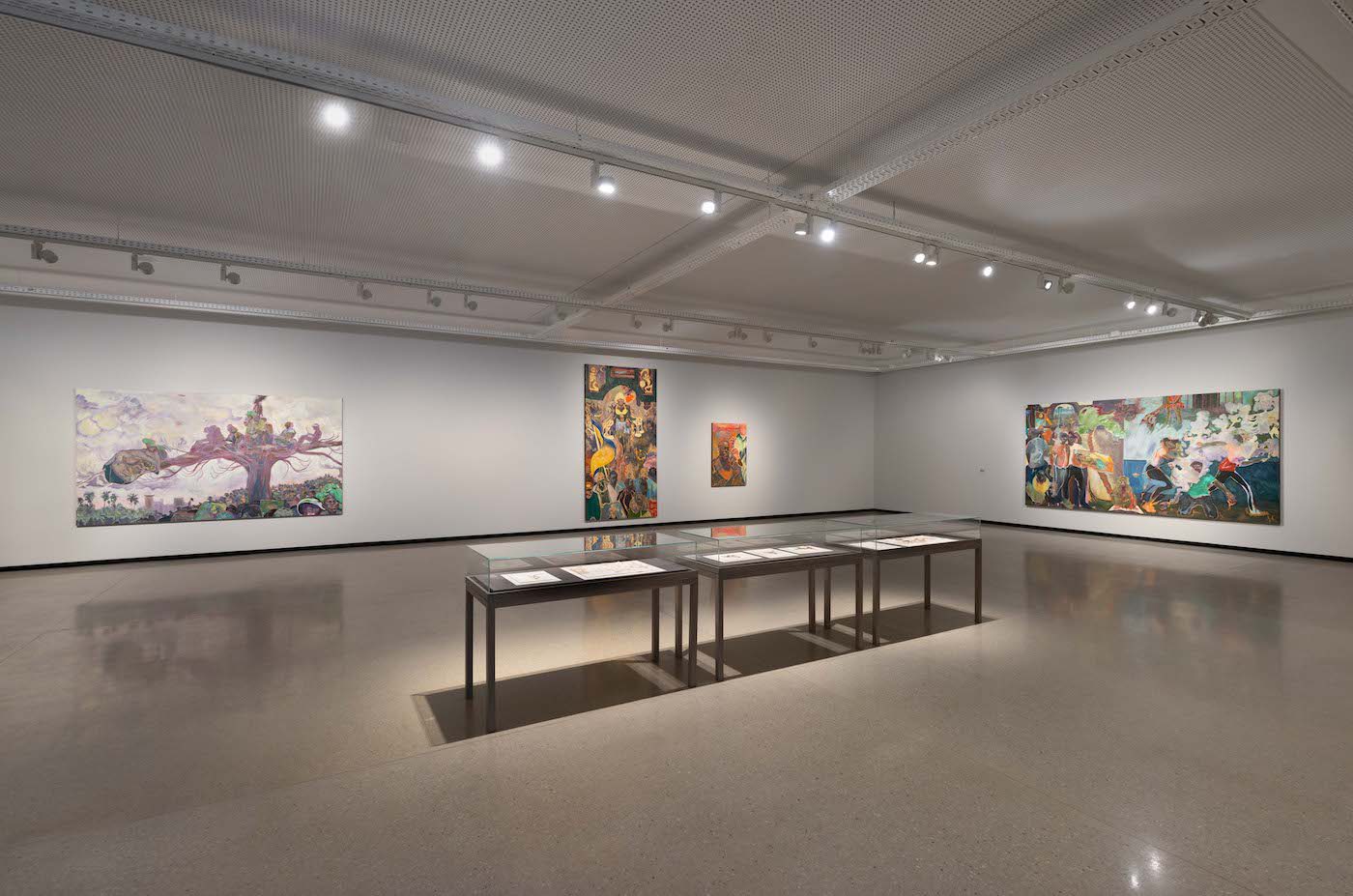 Installation view of Michael Armitage: Accomplice at Norval Foundation. Courtesy Norval Foundation, Cape Town. Photo: Michael Hall, Cape Town.