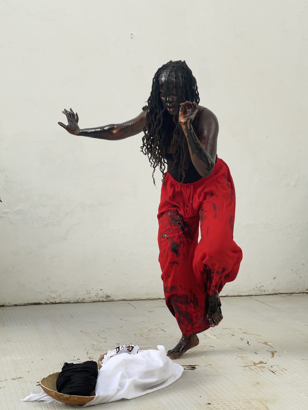 Anaïs Cheleux, performance to mark the abolition of slavery in Martinique, for the opening of the “Ceci n’est pas un pays” exhibition at The OFF Dakar Biennale 2024. Foto: Jean-Baptiste Joire. Courtesy of the artist.