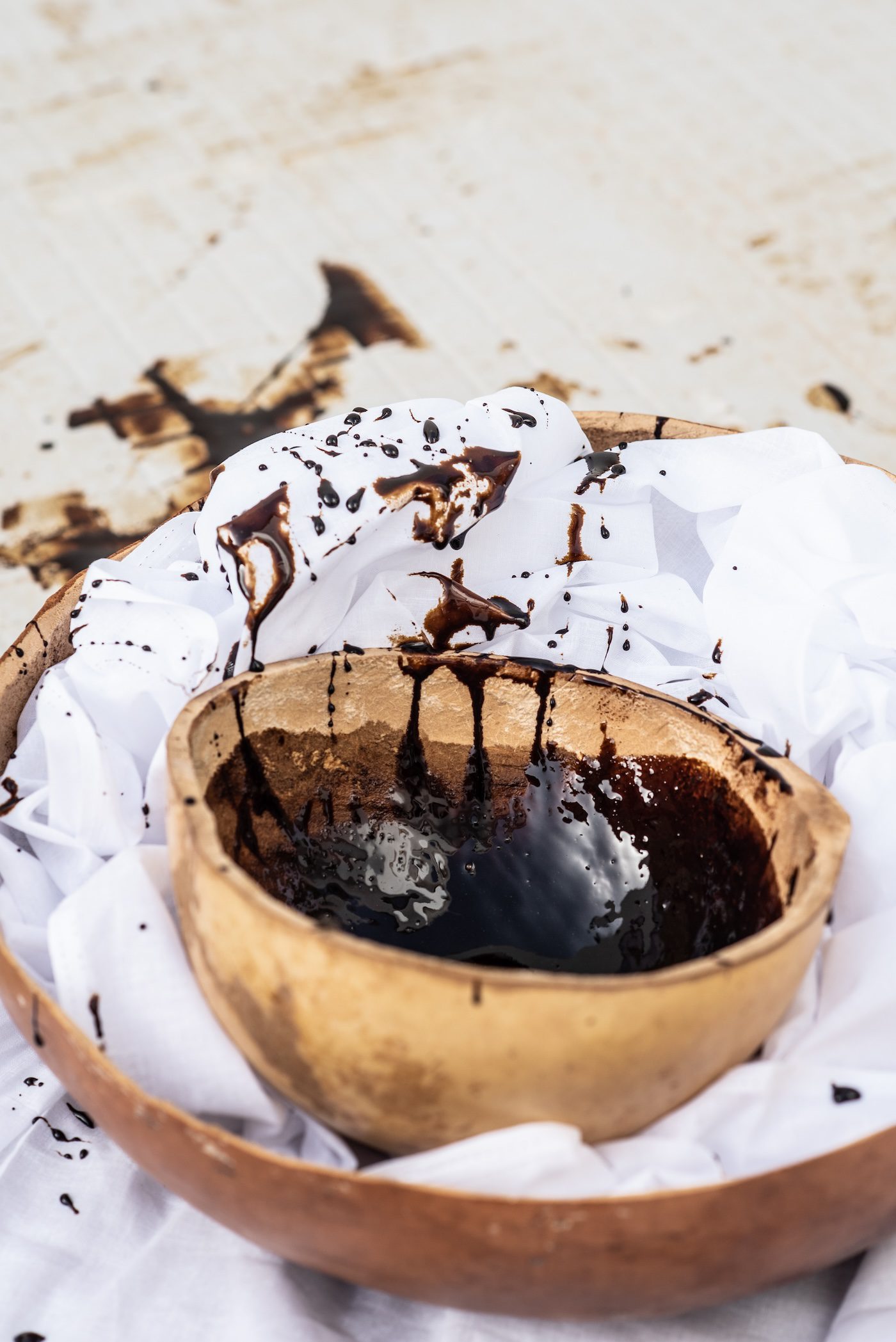 Physical immersion in her work is part of Anaïs’s practice, one that she is continuously, carefully developing. Sé Konsa Nou Yé (Guadeloupean Creole: This is how we are) is a series in which she attempts to let bodies covered in gwo siwo speak. Originally she was working with a dancer friend, but she suggested Anaïs join her in front of the camera. And she did, covering herself in gwo siwo and taking self-portraits. “Something happens when I put gwo siwo onto my skin,” she says. “I feel connected to something else and a certain spirituality.”