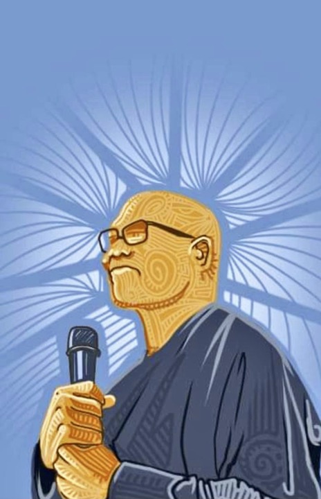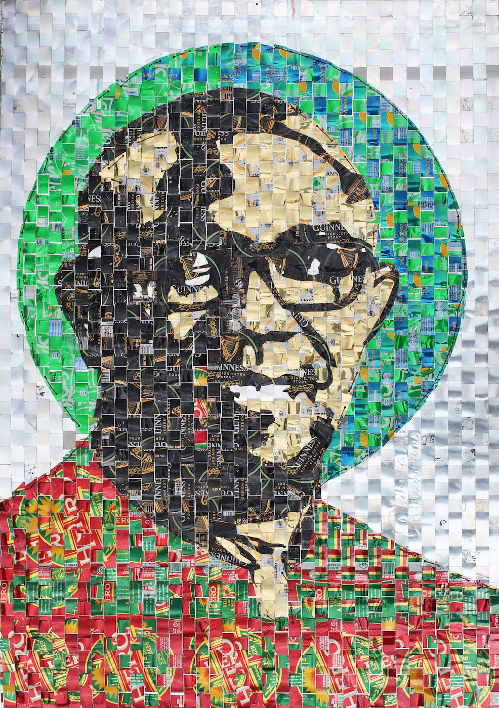 Chibuike Ifedilichukwu’s made Obedient Rock with strips cut out of discarded aluminium beverage cans to portray Obi in his distinctive simple suit. Ifedilichukwu said, “our ‘political messiah’ will follow the rule of law and order in accordance to the constitution if elected into authority.” His work was made using a simple weaving process, stitched with copper wire; Obi’s head is encircled with a halo typical of the paintings of saints in Christian art. This is to symbolize an uprightness which has survived media scrutiny and shone throughout Obi’s political journey. Chambarlin Ukenedo, a Lagos-based artist, has likewise depicted Obi in a solemn mood with rays of light around his head. These two works speak to the deep reverence and the religious fervor many feel for Obi, a devout Christian in a multi-religious country.
