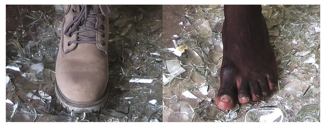 Guy Woueté, Menu, 2015. Production still from SD video installation. Loop, 4:17 mins + 01:26 mins, 16/9 & 4/3. Color & sound, triple channels projections; dimensions variable. © Guy Woueté.