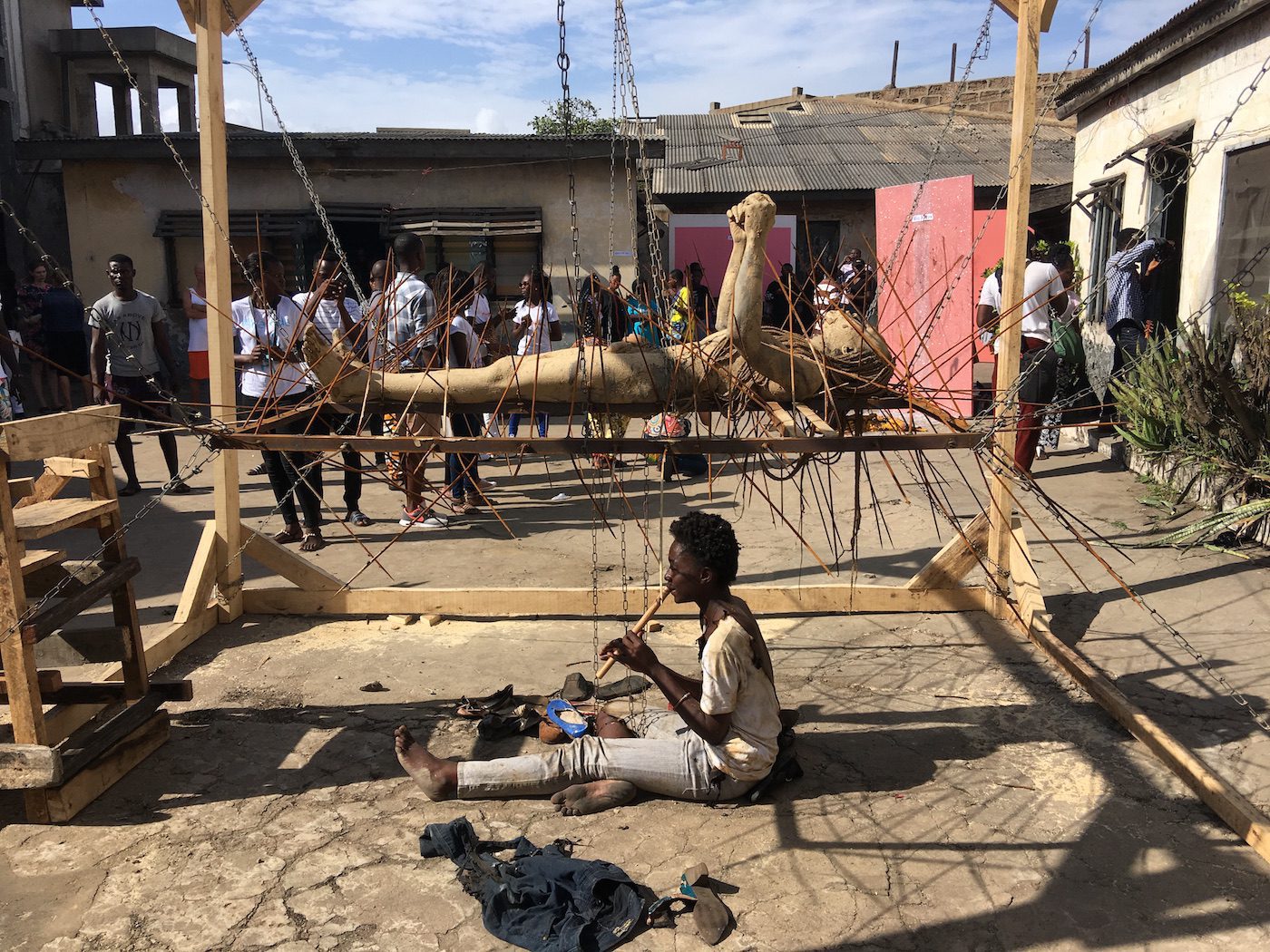 Percy Nii Nortey, Without a Command, 2018, at the slave auction courtyard in James Fort. Photo: Ruth Simbao