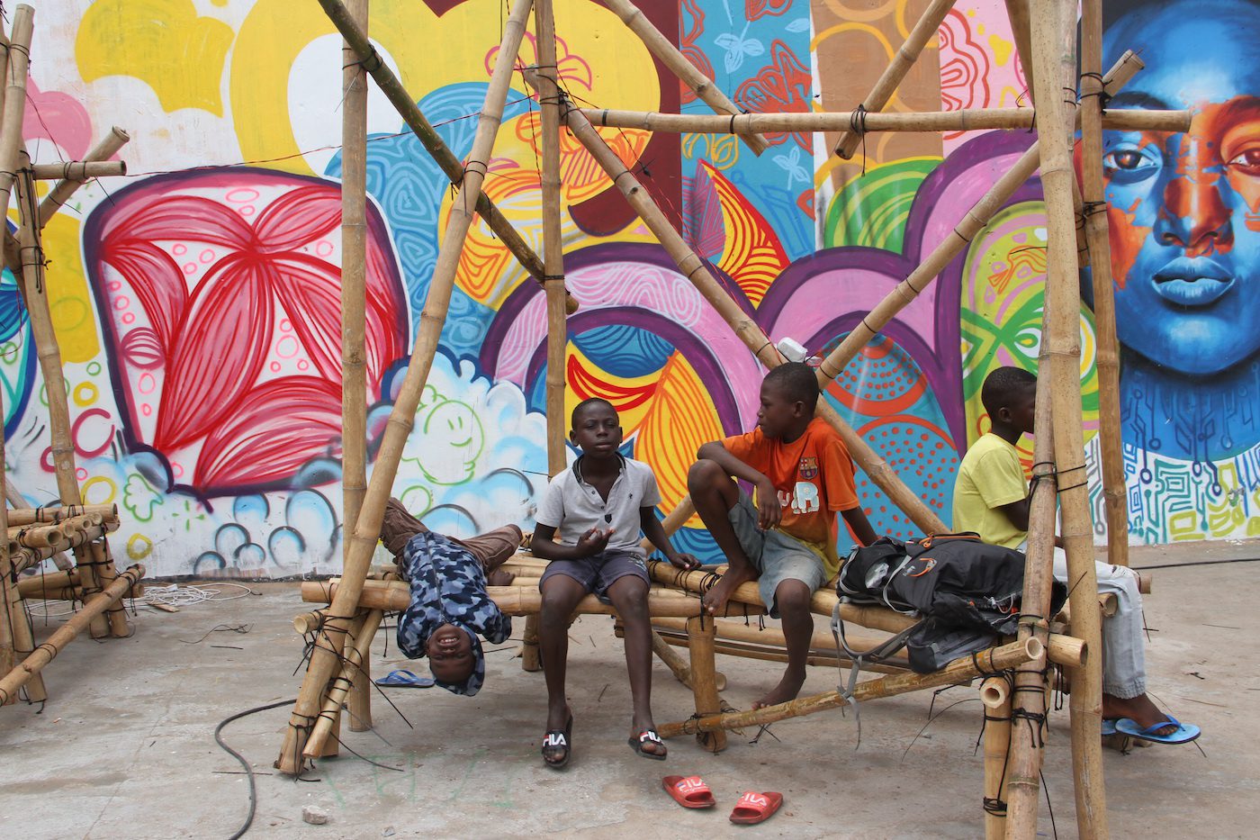 Members of the El Warcha collective from Tunisia collaborated with children in James Town to create functional objects from recycled bamboo sourced in Accra. Photo Ruth Simbao