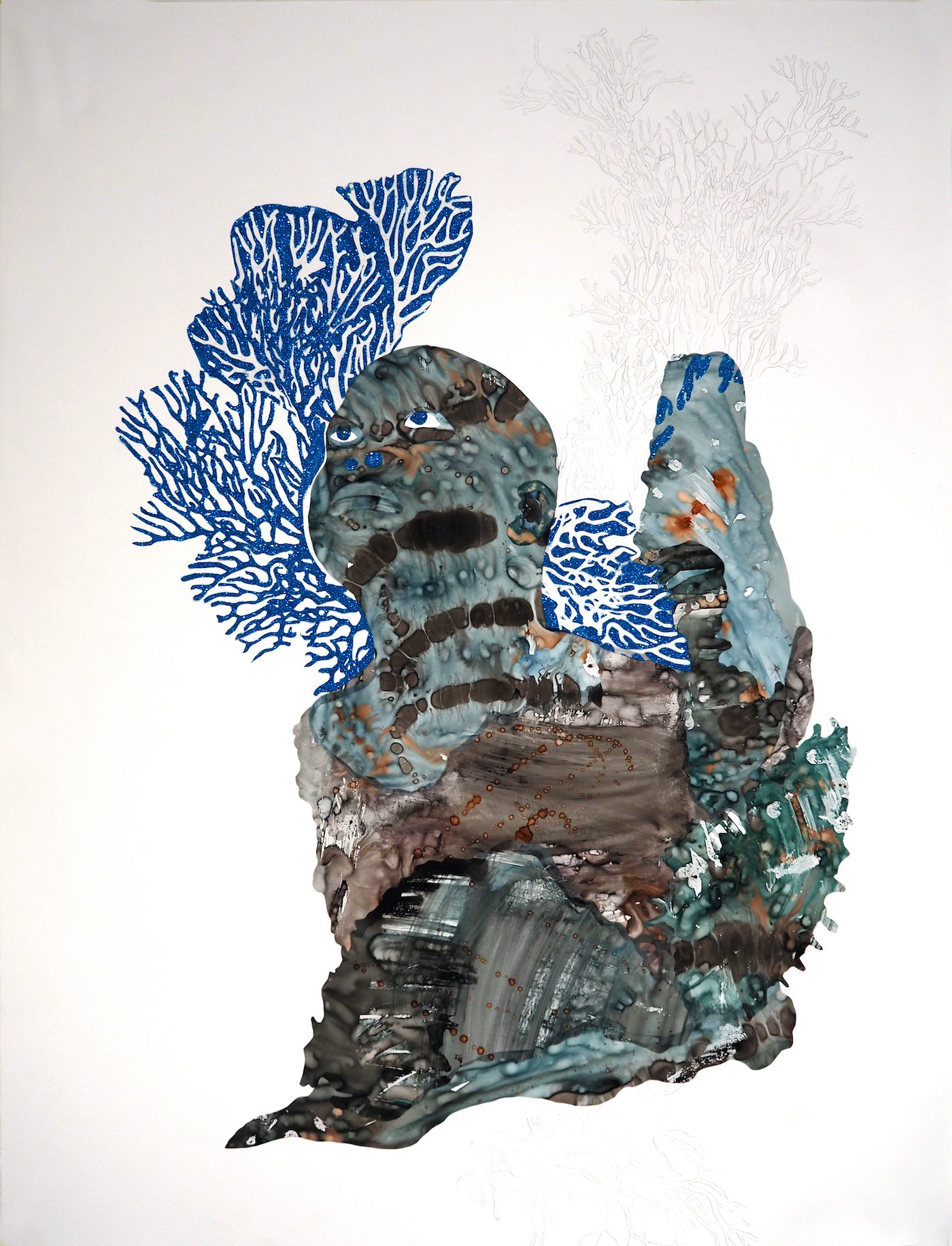 Florine Démosthène, Possibility, 2019. Collage on paper (ink, mylar, pigment stick, graphite and glitter) 38 x 50 Inches. Courtesy Mariane Ibrahim Gallery.