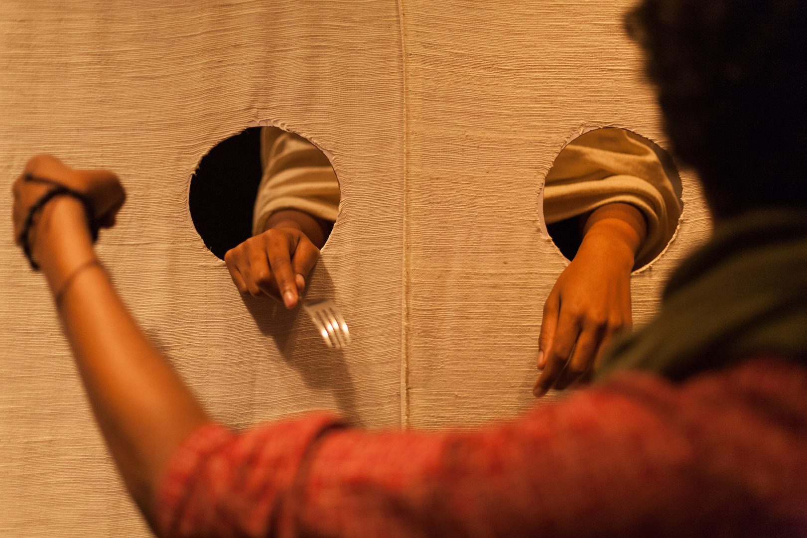 Guarsha installation performance in the Here and Here final group exhibition by the Asiko participating Curators and Artists under the guidance of Bisi Silva. Photo: Papa Shaba