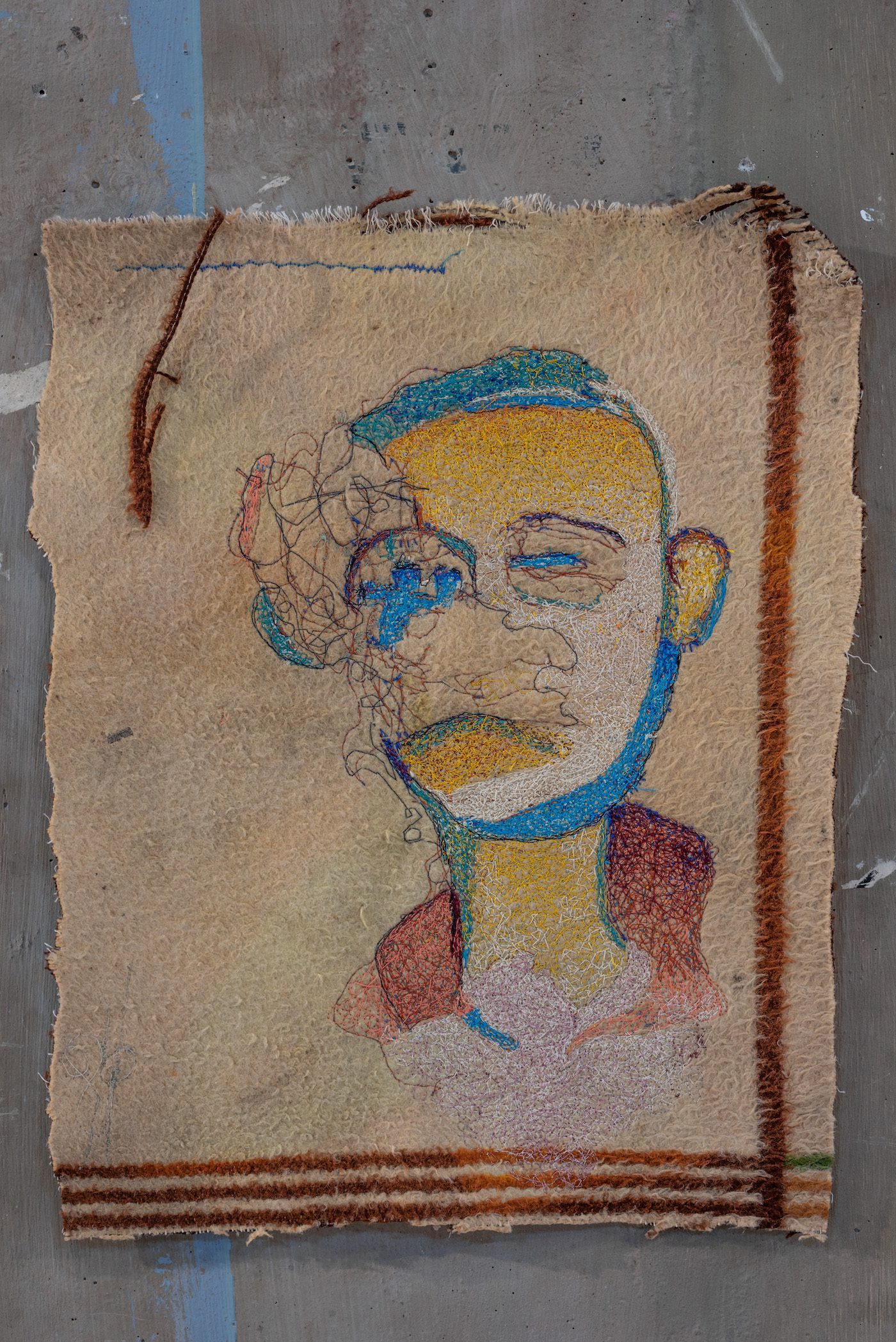 Igshaan Adams, Self-portrait, 2009. Cotton thread embroidery on found blanket, 30 x 20 cm. Courtesy of Standard Bank Gallery.