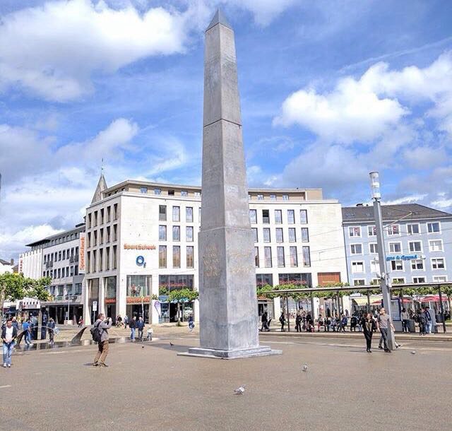 Olu Oguibe, Das Fremdlinge und Flüchtlinge Monument (Monument for strangers and refugees, 2017), Concrete 3 × 3 × 16.3 m, Königsplatz, Kassel. Photo: C&