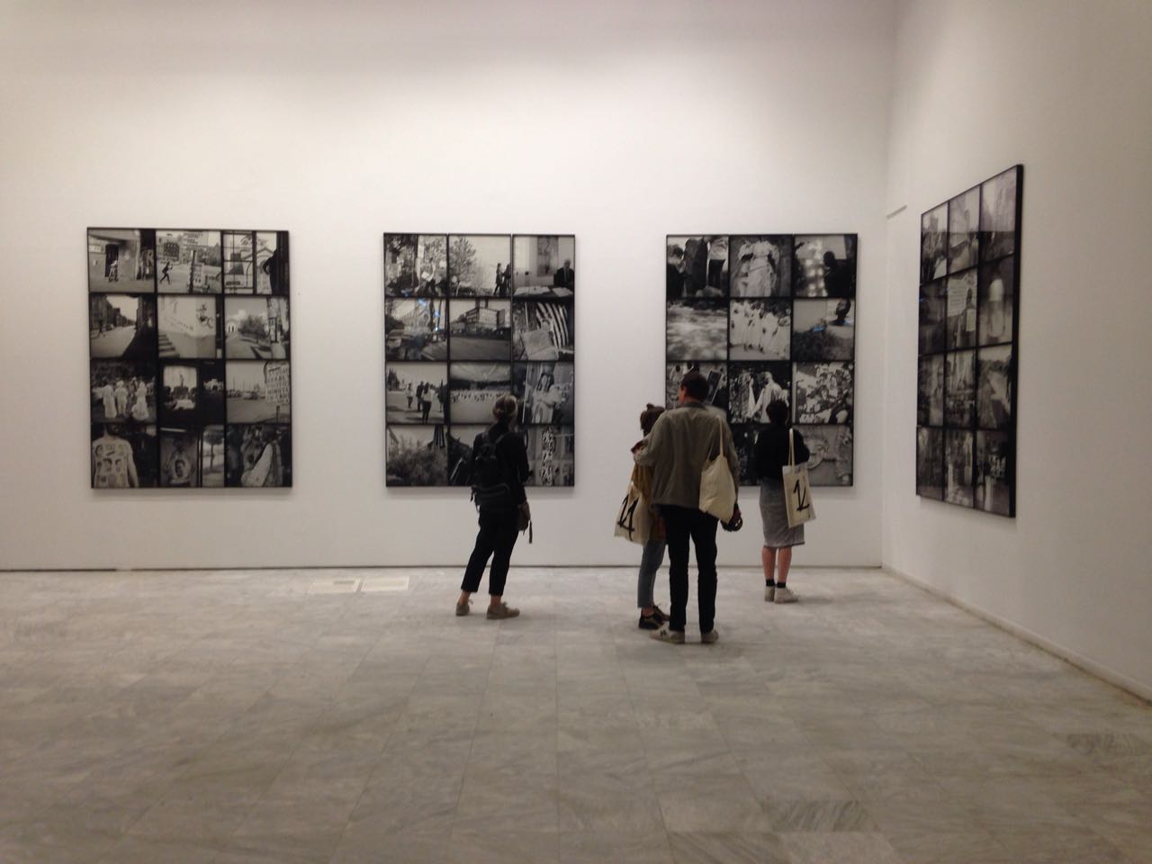 Akinbode Akinbiyi, Installation view Passageways, Involuntary Narratives, and the Sound of Crowded Spaces (2015-17). Forty-eight black-and-white inkjet prints. documenta 14 in Athens, 2017. Photo by C&