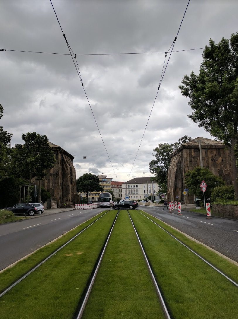Olu Oguibe, Das Fremdlinge und Flüchtlinge Monument (Monument for strangers and refugees, 2017), Concrete 3 × 3 × 16.3 m, Königsplatz, Kassel. Photo: C&