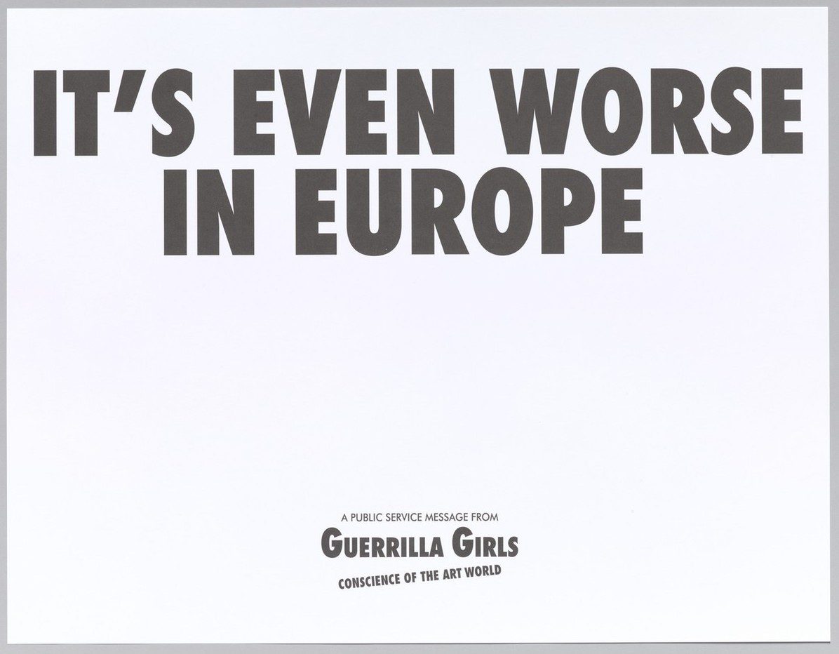 Guerrilla Girls, It’s Even Worse In Europe, 1986. Paper, Offset print, 55,9 x 43,1 cm. © Rheinisches Bildarchiv Köln. Courtesy of the Museum Ludwig, Grafische Sammlung