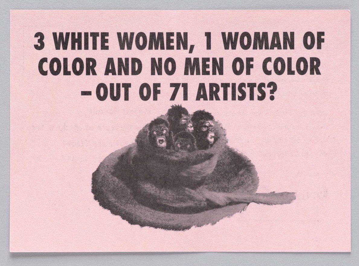 Guerrilla Girls, 3 White Women, 1 Woman Of Color And No Men Of Color-Out Of 71 Artists?(Detail), 1997. Paper, Offset print, 10,7 x 15 cm. © Rheinisches Bildarchiv Köln. Courtesy of the Museum Ludwig, Grafische Sammlung
