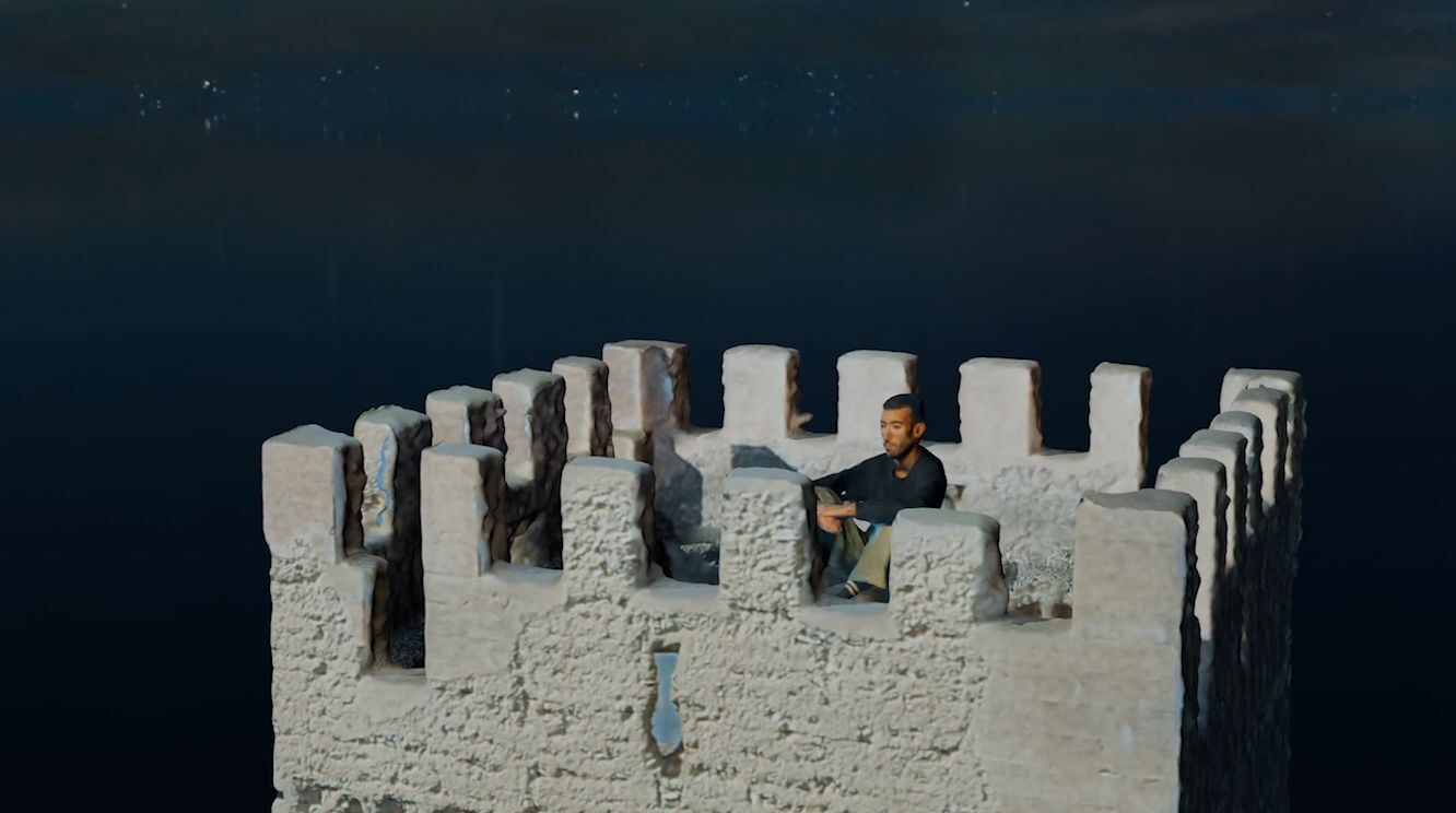 Lately, Syncretical has been experimenting with 3D techniques to dig further into self-representation and storytelling. From his fictional world “CyberKsar,” he allows his virtual twin to share his experience of religion. Being very much connected to his phone and social networks, the artist wondered how he could make his spiritual enlightenment from real life and that from his virtual world meet during the month of Ramadan. “When you pray or meditate, you settle in an infinite space. This virtual space has no physical boundaries, it is huge just like the world inside me. Now I have the opportunity to materialize that space thanks to 3D.” The virtual inner Ksar (fortress) is inspired by North African landscapes transmitted to the artist. His avatar evolves within his own stories and his own space of modest floating ochre buildings, overhung by terraces and parabolas.