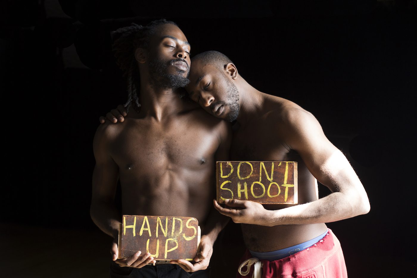 Ricarrdo Valentine: We’d created solo works individually, I particularly for the Bates Dance Festival [in Maine], and we both realized we work on the same things, so we brainstormed for a while. We also talked about seeing two dark-skinned men as leaders in the dance community. Oftentimes the narrative is a Black man and a white person, or cross-cultural collaborations. We wanted to bring a new narrative and imagery to the forefront. Brother(hood) was really created in our bedroom, and there are parentheses around the “hood” because I am from Brooklyn with parents from Jamaica, and Orlando is from the North Side of Minneapolis.