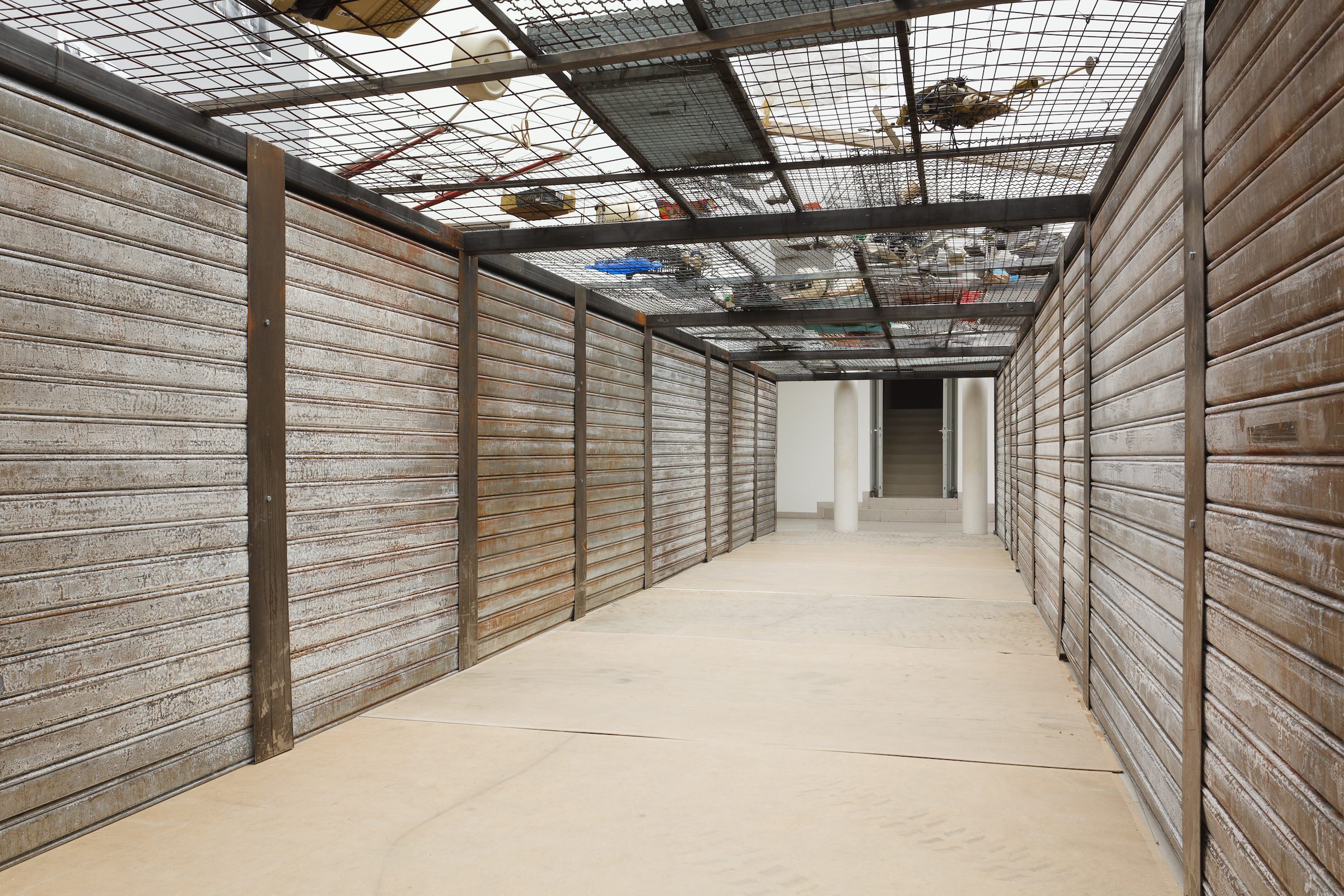 The passageway is low, oppressive. Uneasily and slowly, visitors shuffle through the metre-long latticed corridor covered in trash and electronic waste. Already the exhibition’s opening work conveys a feeling of discomfort. Los de arriba y los de abajo, the title Kader Attia has given this work complemented by newspaper clippings, is about “the ones on top and the ones at the bottom,” about a horizontal fortress of oppression: in Hebron, on the West Bank, the Jewish residents’ trash regularly hails down on the shops and houses of the Palestinians living below them. Instead of letting this humiliation drive them out of the region, the Palestinians try to protect themselves from the worst rubbish with these mesh wire constructions.
