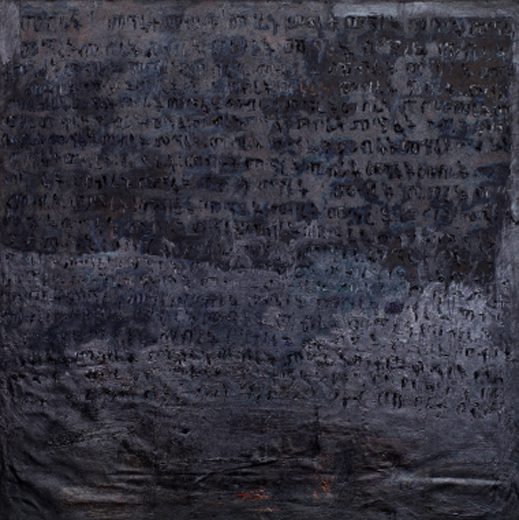 I met Desalegn at the opening of !Kauru 2014, an exhibition of contemporary art from the Southern African Development Community (SADC) region. A San word, !Kauru means “to look about, around, or outside of oneself.” It is this immersion in a world beyond the known, and outside of the self, that powered Desalegn as he bounced his thoughts off his thickly encrusted and cryptically lettered black-on-black oil painting titled On/Off. “There is something that exists in the dark surrounding,” he said. “We focus on the visible things, but what about the invisible?”
