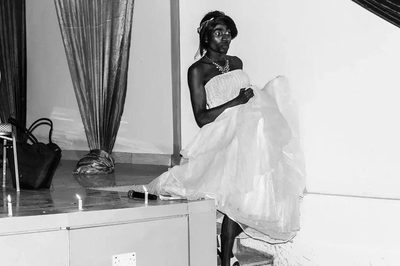 In Alain Polo’s Serie blanche (2016), the Congolese artist plays with similar codes but in reverse by bleaching the image of Black naked bodies so that they become ethnically ambiguous. In this way, the artist tries to free the photographed body from a Western gaze that exoticizes it by himself controlling the image (and his own body). Also confronting this very difference that Fanon so emphasized, is Eric Gyamfi. In Just Like Us (2016), the Ghanaian artist documented the daily lives of the heterogeneous queer community in Ghana, forcing us to question what is actually “different”. This approach challenges the heteronormative gaze and the artist takes it one step further by juxtaposing photos with offline and online abusive comments, complicating Fanon’s maximums by emphasizing the importance of how the Black community sees itself regardless of the white gaze.